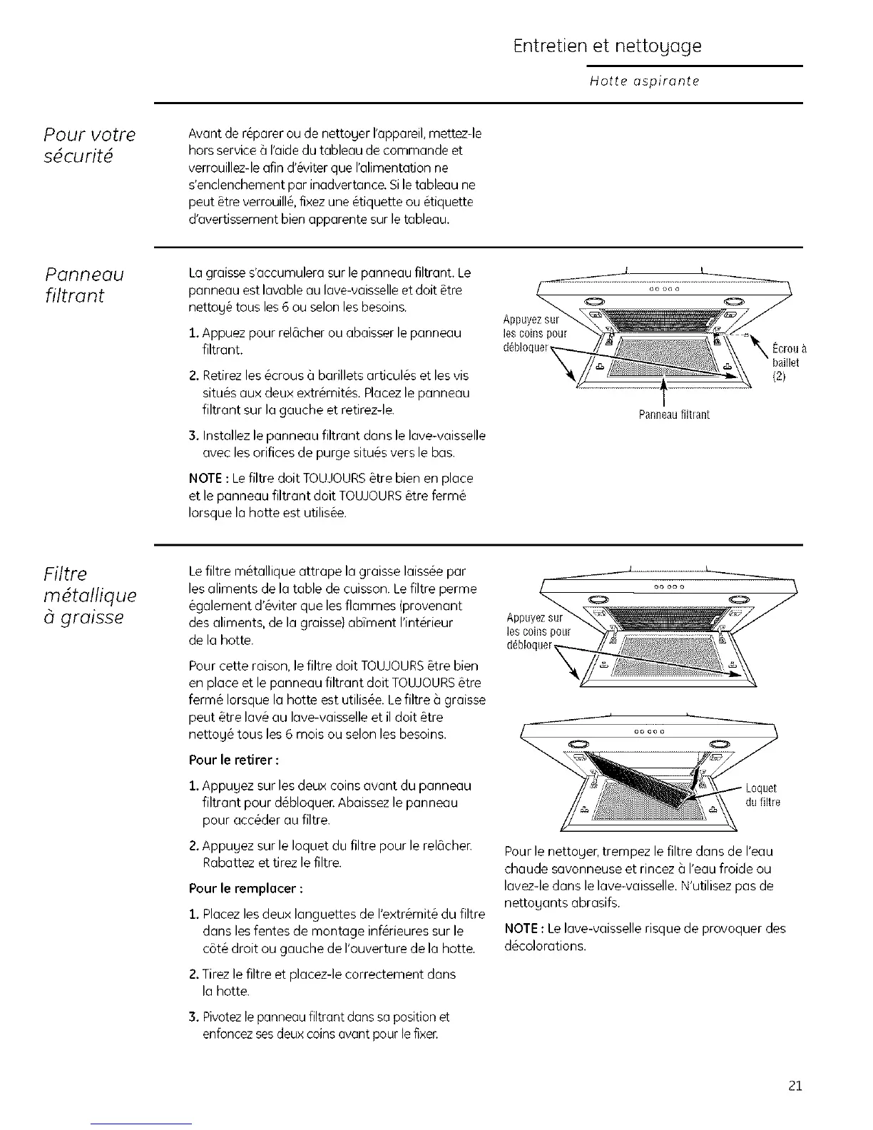 ferm_ Iorsque la hotte est utilis@. Le filtre _ graisse