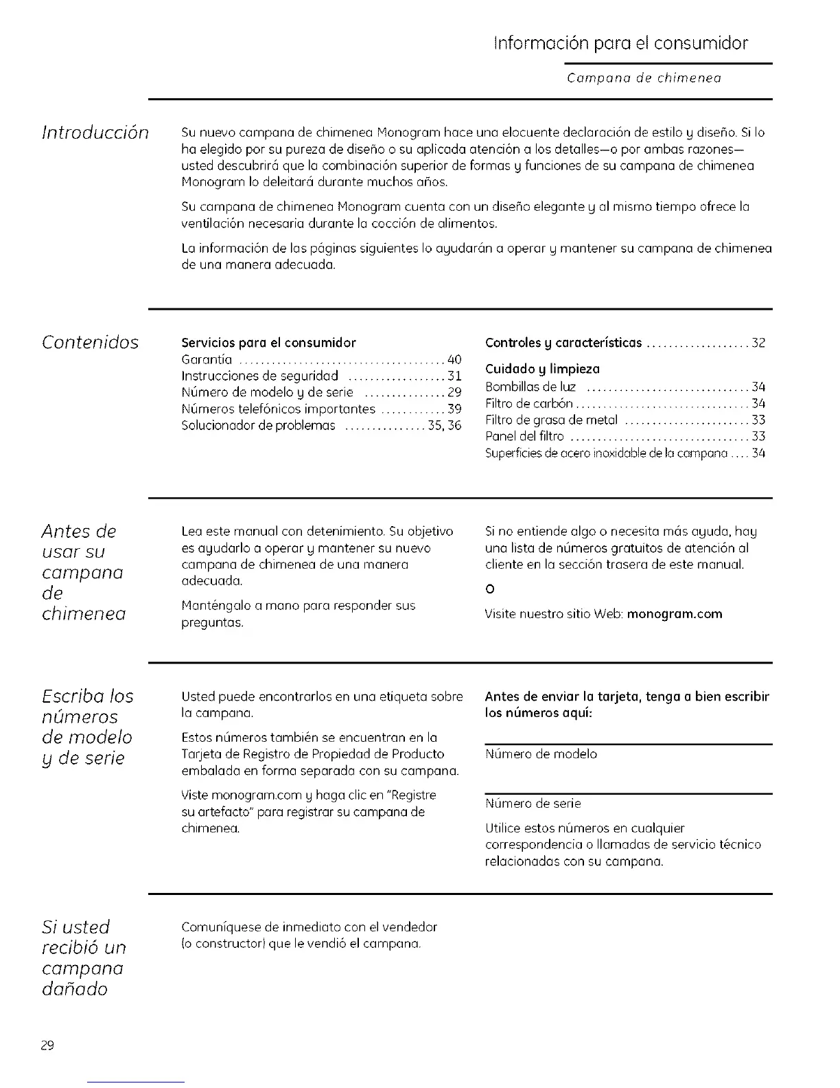 La informaci6n de las p6ginas siguientes Io agudar6n a operar g mantener su campana de chimenea