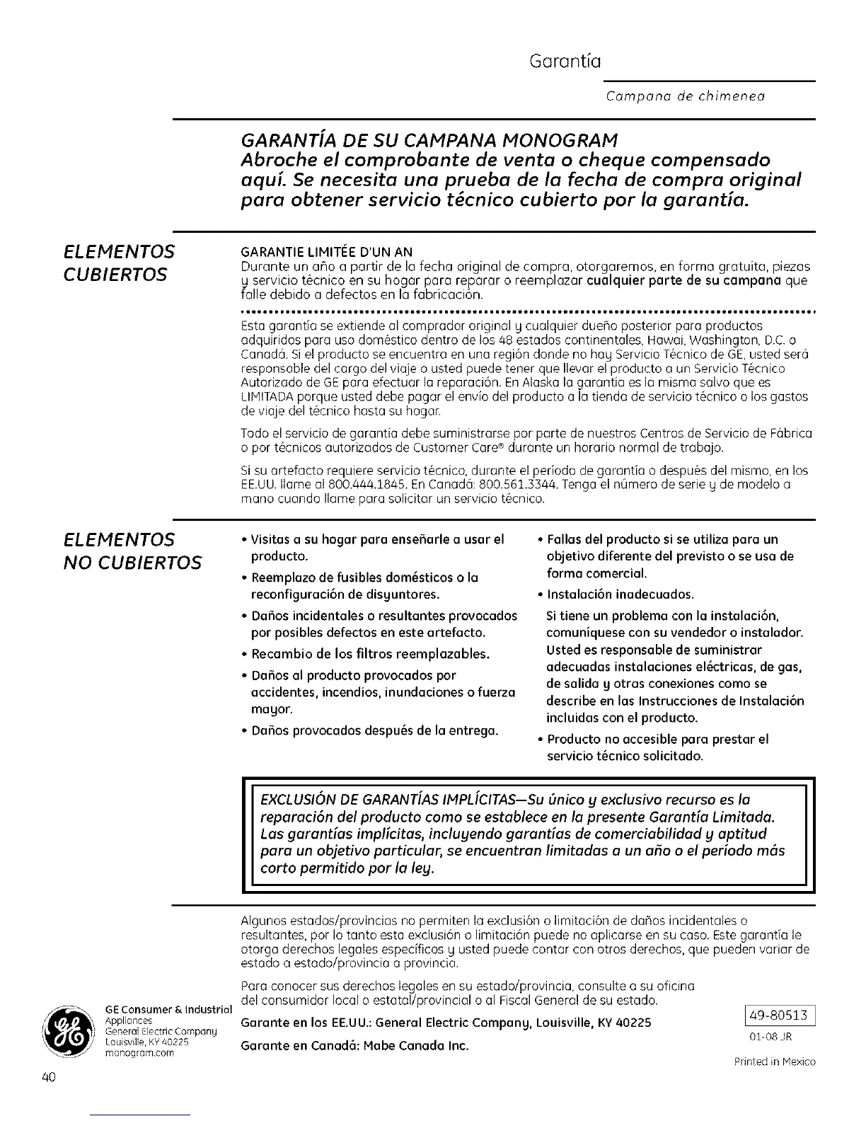 Garante en los EEUU.: General Electric Compang, Louisville, KY 40225 [ 49-80513 j