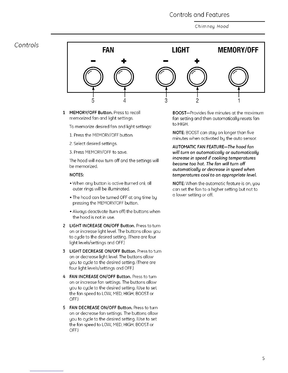 5 FAN DECREASE ON/OFF Button. Press to turn