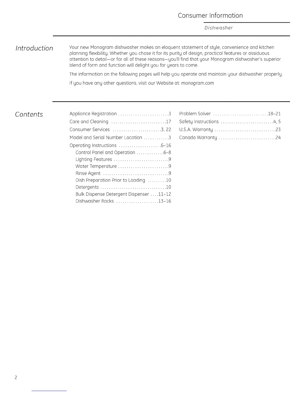 Introduction Your new Honogram dishwasher makes an eloquent statement of stgle, convenience and kitchen