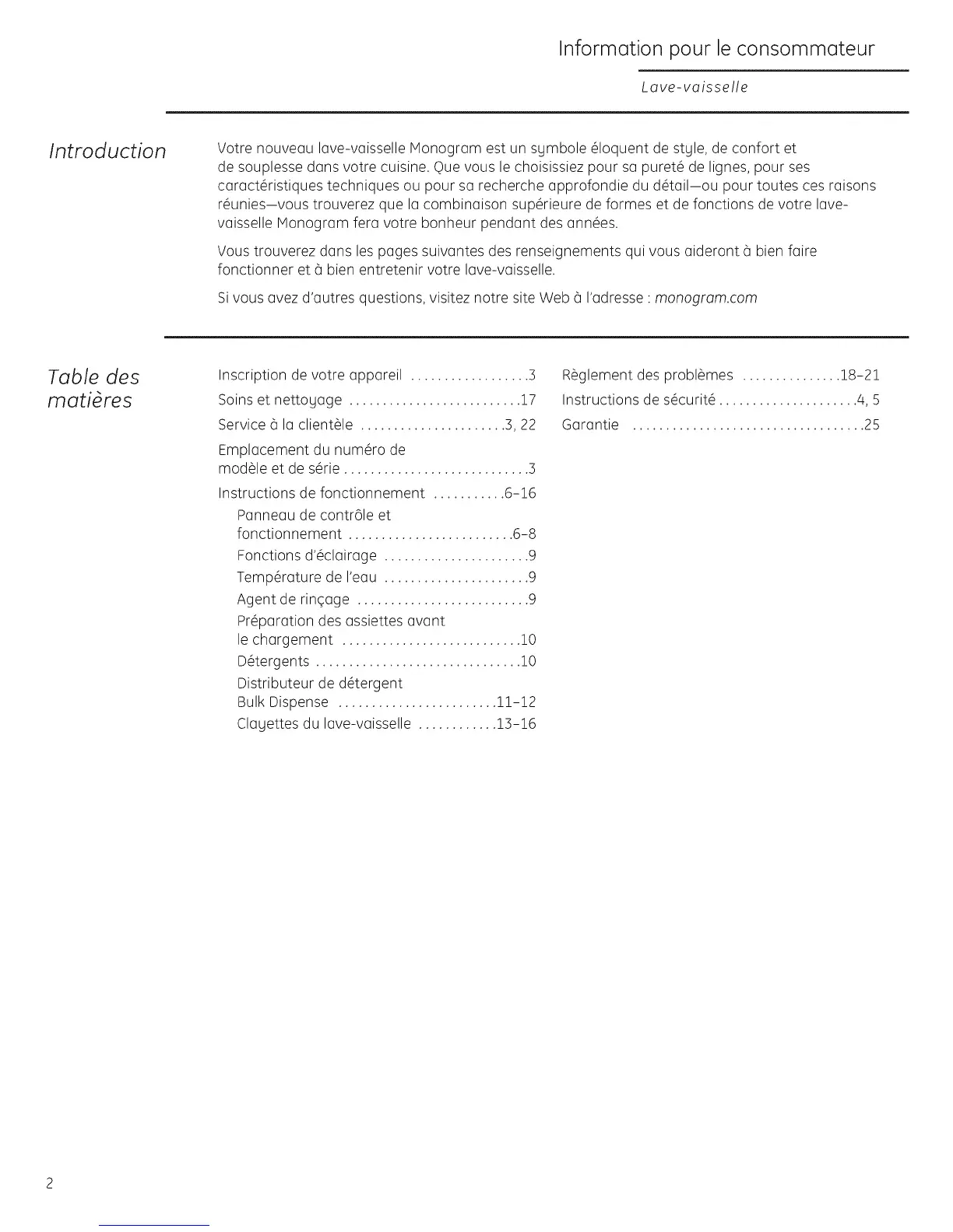 Introduction Votre nouveau lave-vaisselle Monogram est un sgmbole _loquent de stgle, de confort et
