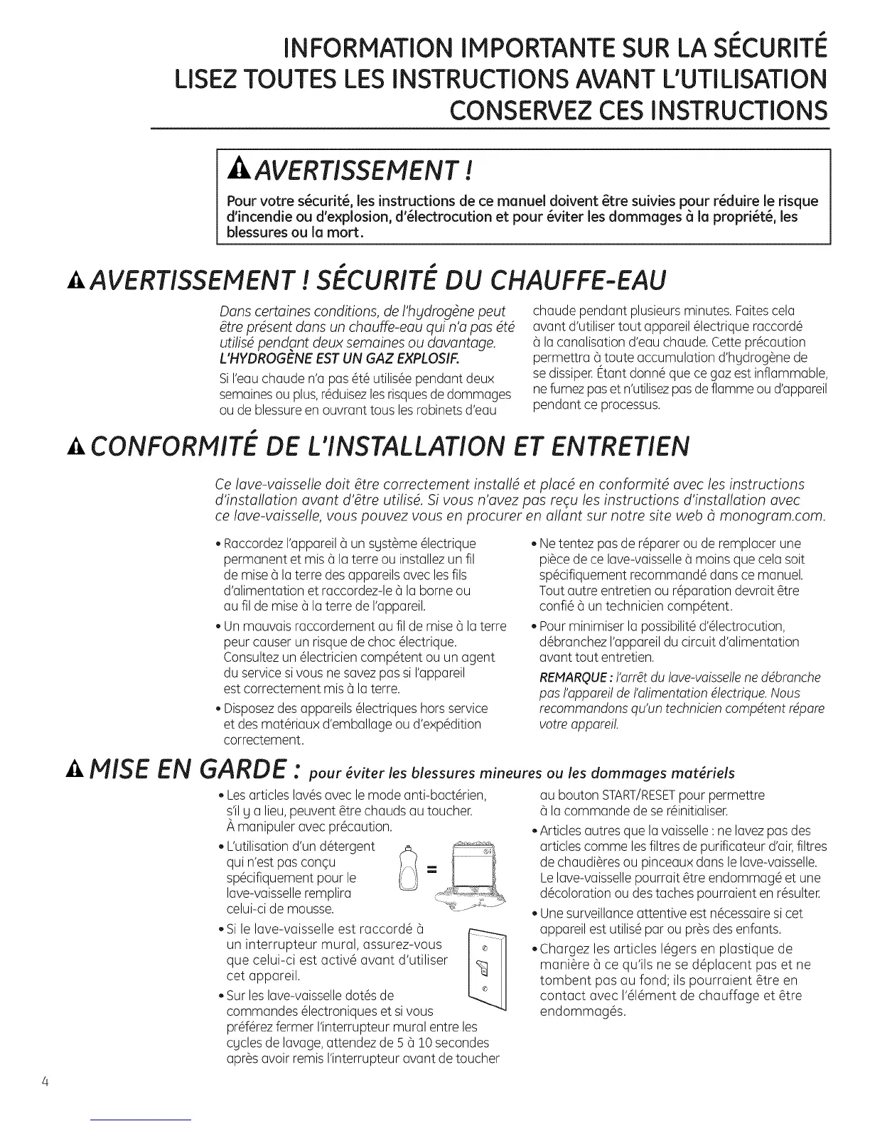 d'incendie ou d'explosion, d'_lectrocution et pour _viter les dommages _ la proprietY, les