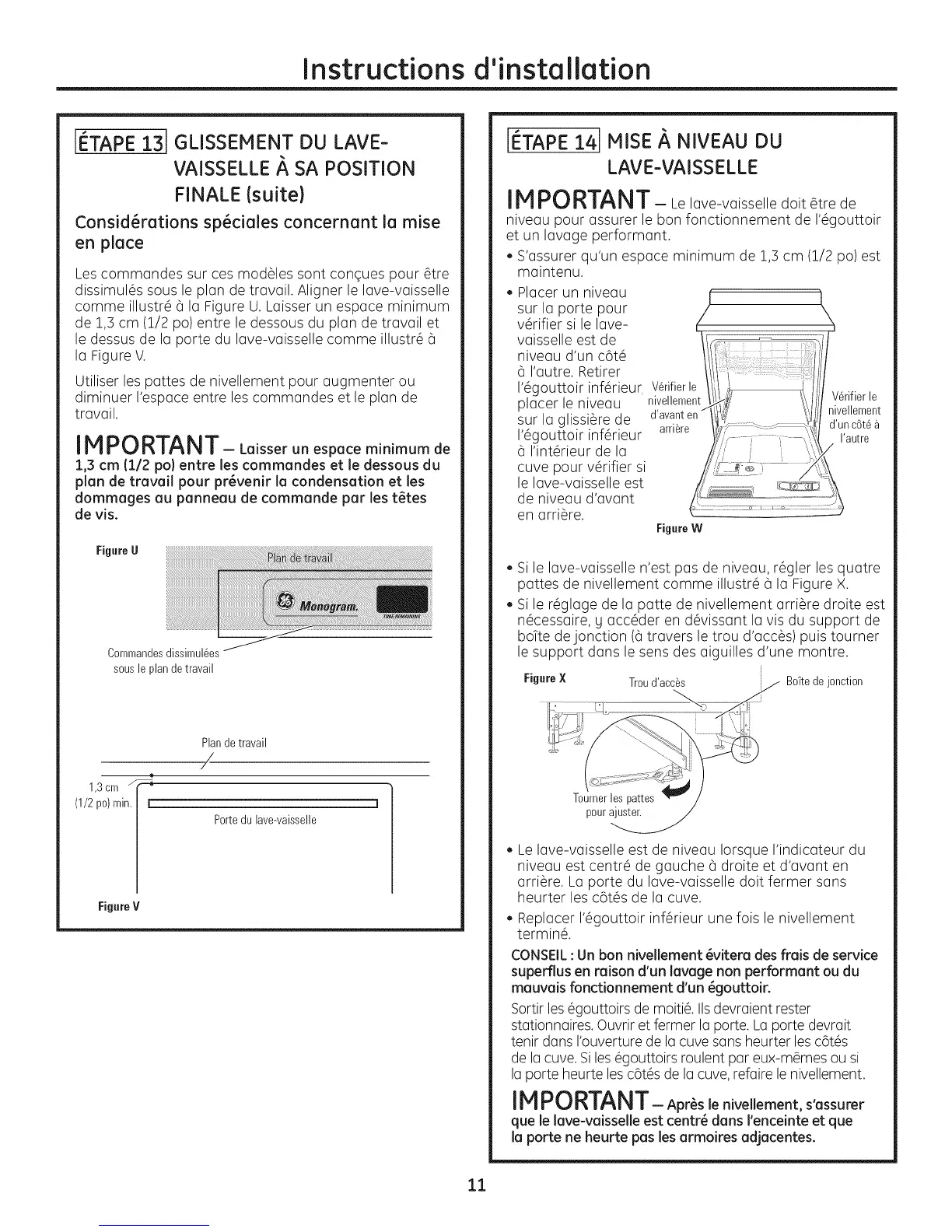 dissimul_s sous le plan de travail. Aligner le lave-vaisselle