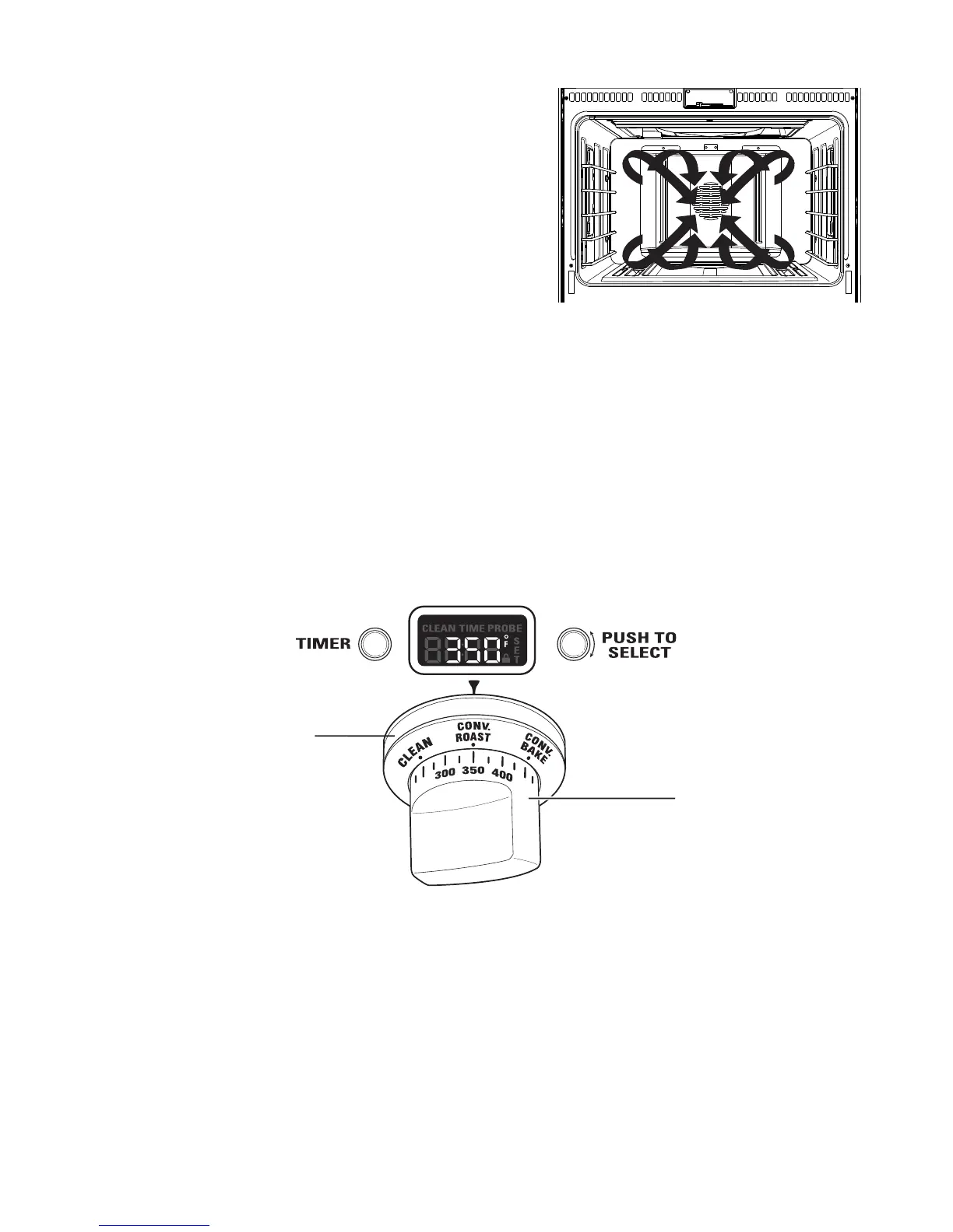 When set on CONV BAKE or CONV ROAST, the rear convection elements and the fan operate when the oven