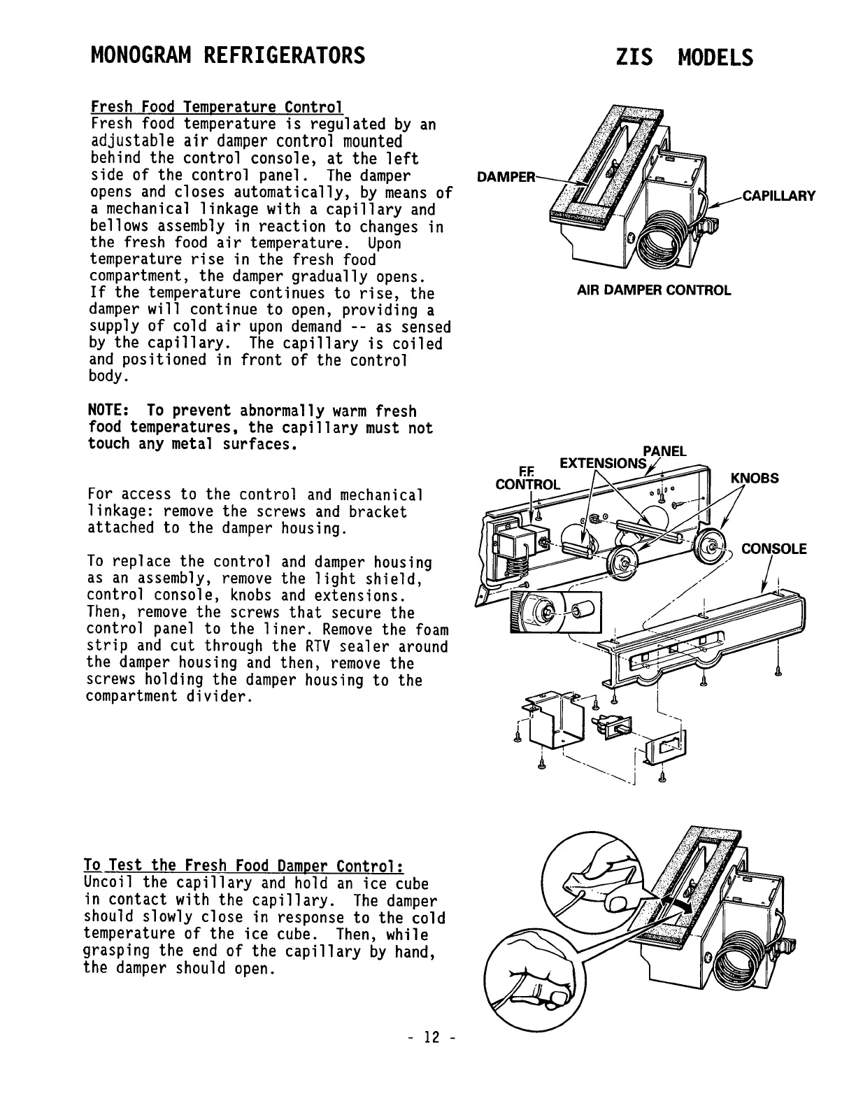 Monogram ZIS42 - Fresh Food Temperature Control; To Test the Fresh Food Damper Control