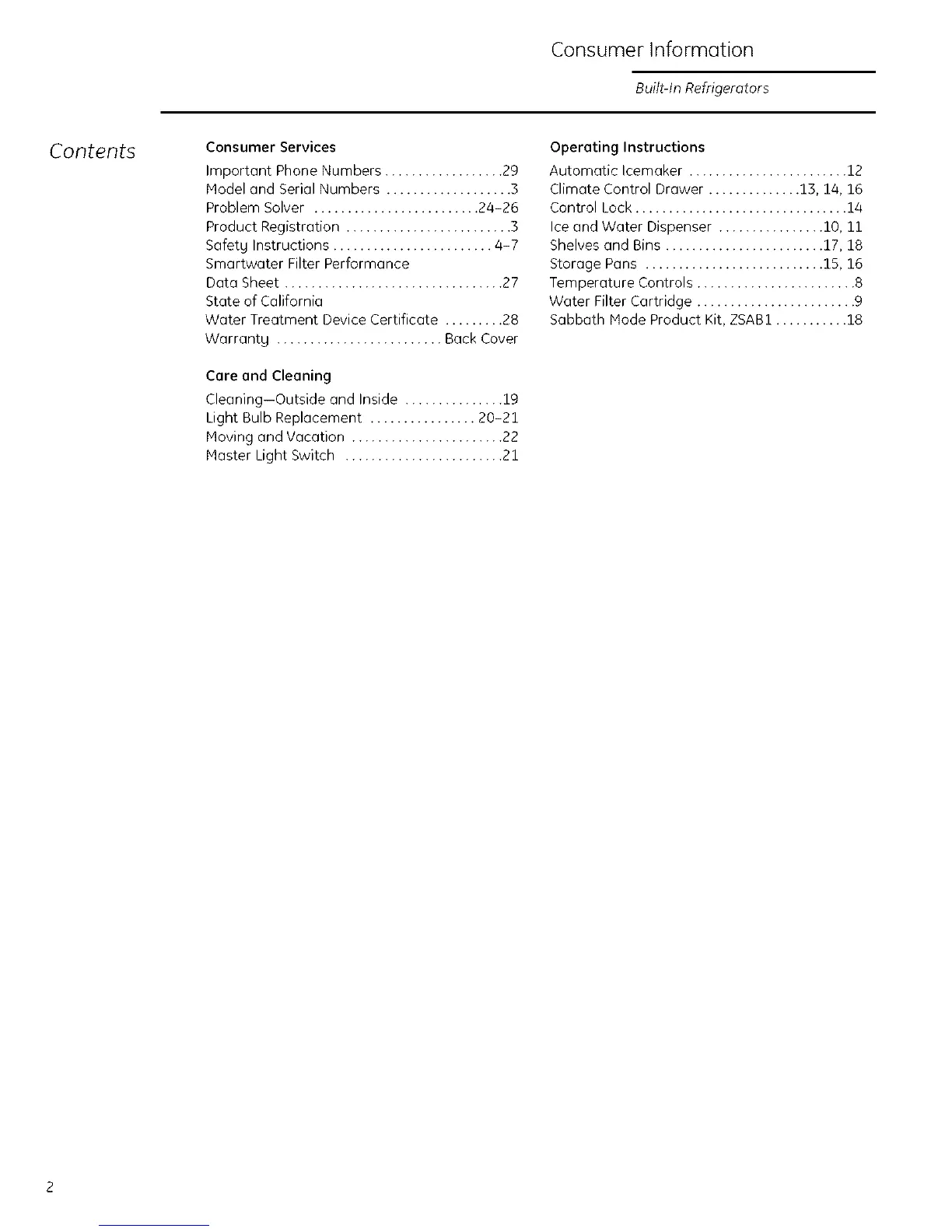 Ice and Water Dispenser ................ 10, 11