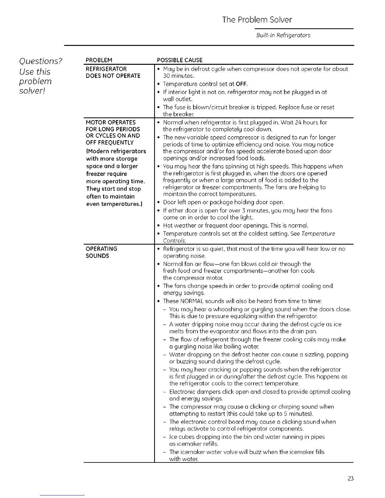 REFRIGERATOR May be in defrost cycle when compressor does not operate for about
