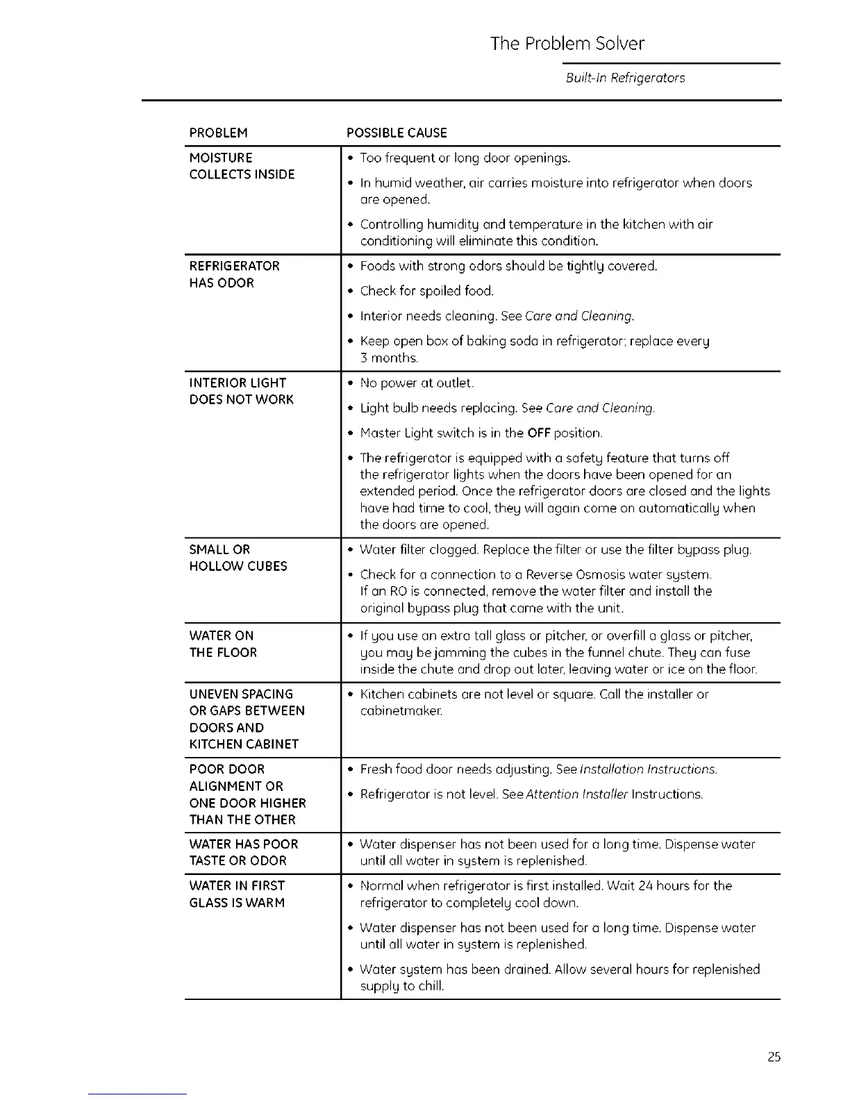 • Refrigerator is not level. SeeAttention Installer Instructions.