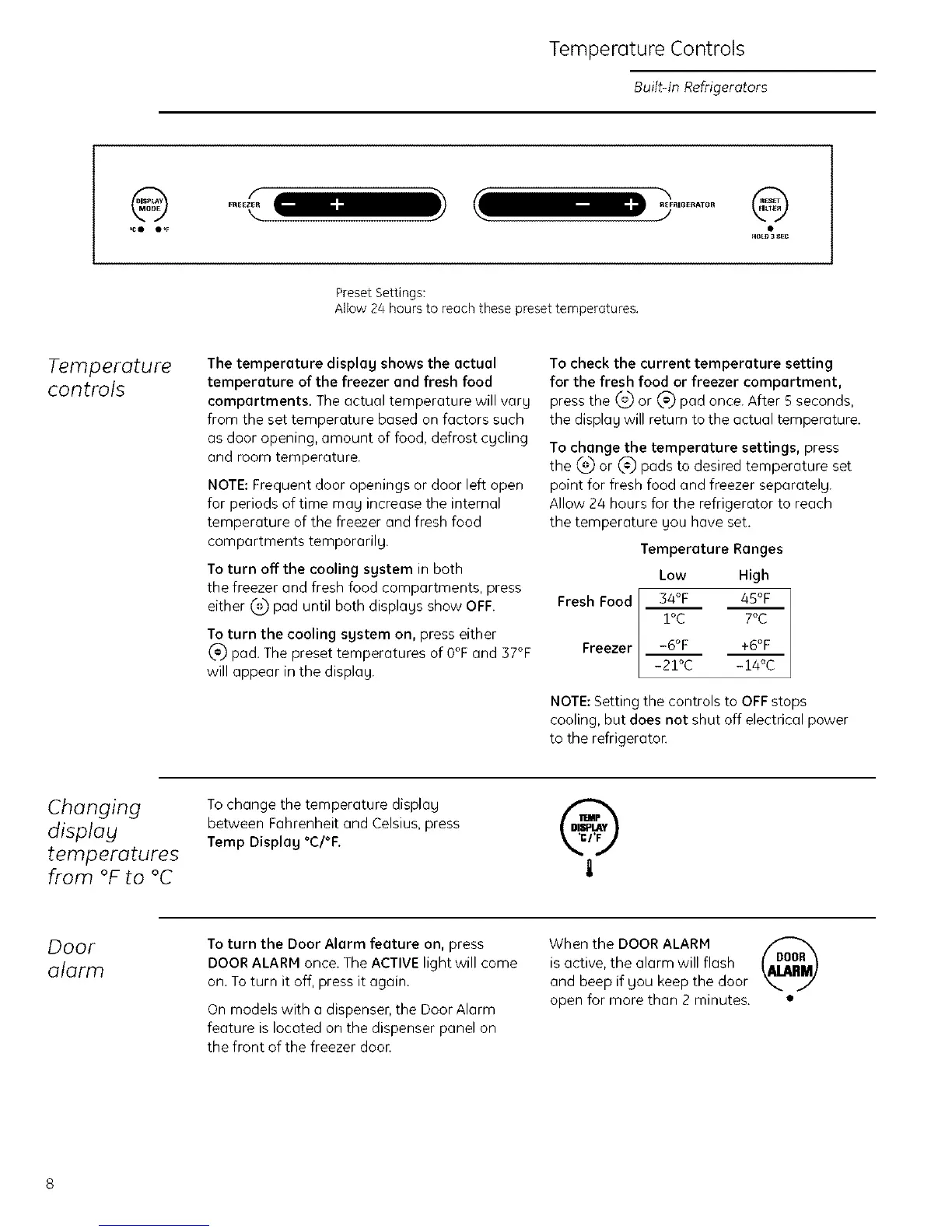 On models with a dispenser, the Door Alarm