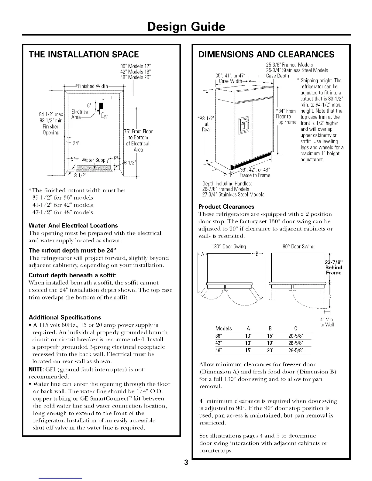 (Dimension A) and fl'esh fi_od door (Dimension B)
