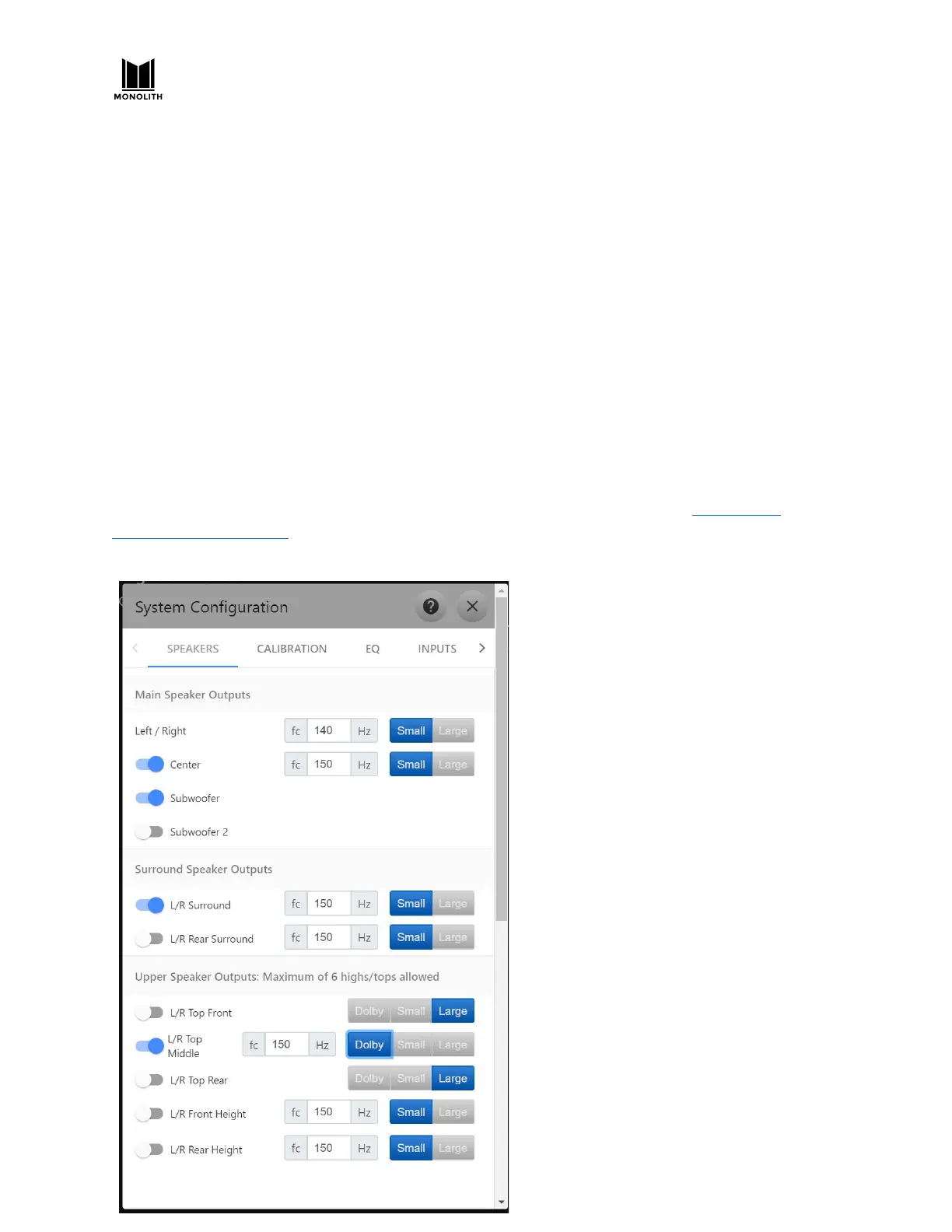 full-range speakers, select “small” and set the