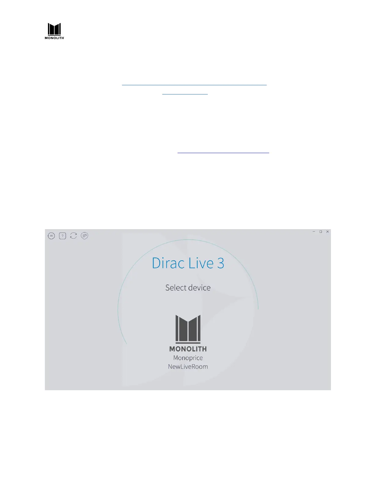 4) Open DiracLive and connect to the Monolith HTP-1. The displayed name is set on the SYSTEM