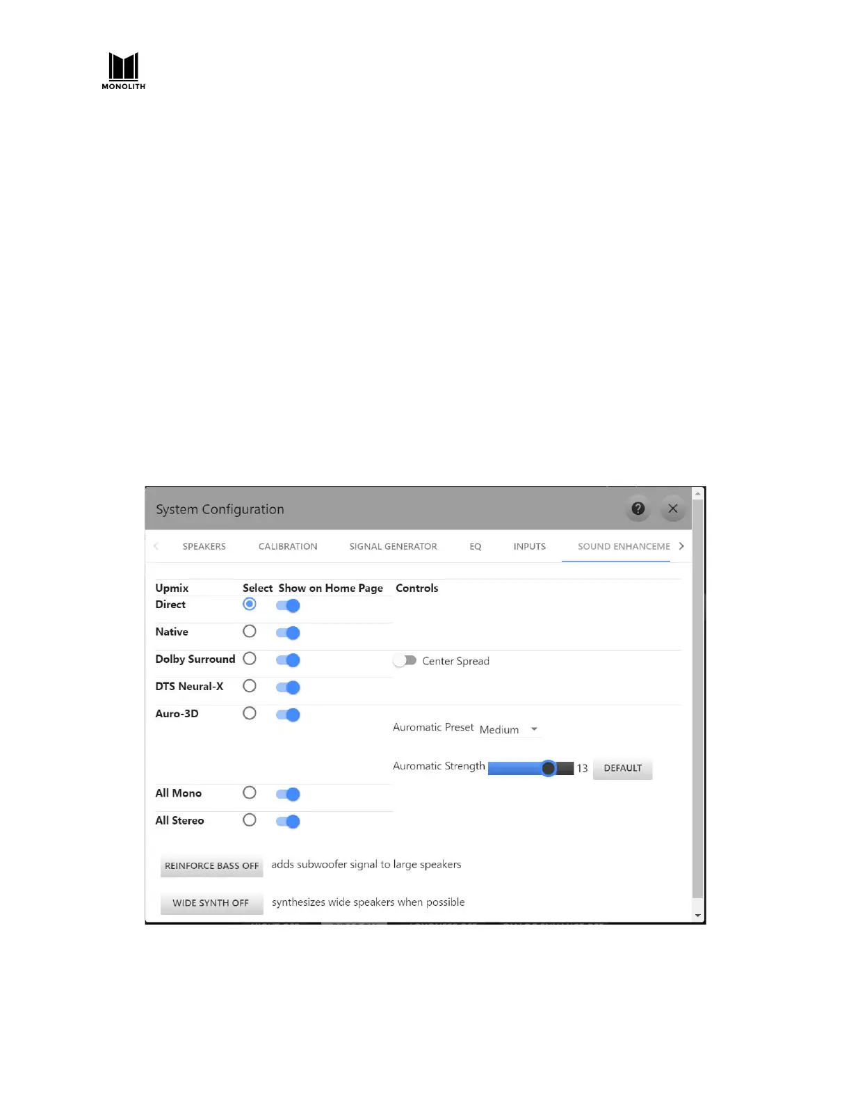 The Sound Enhancement panel of the system configuration gives access to these settings.