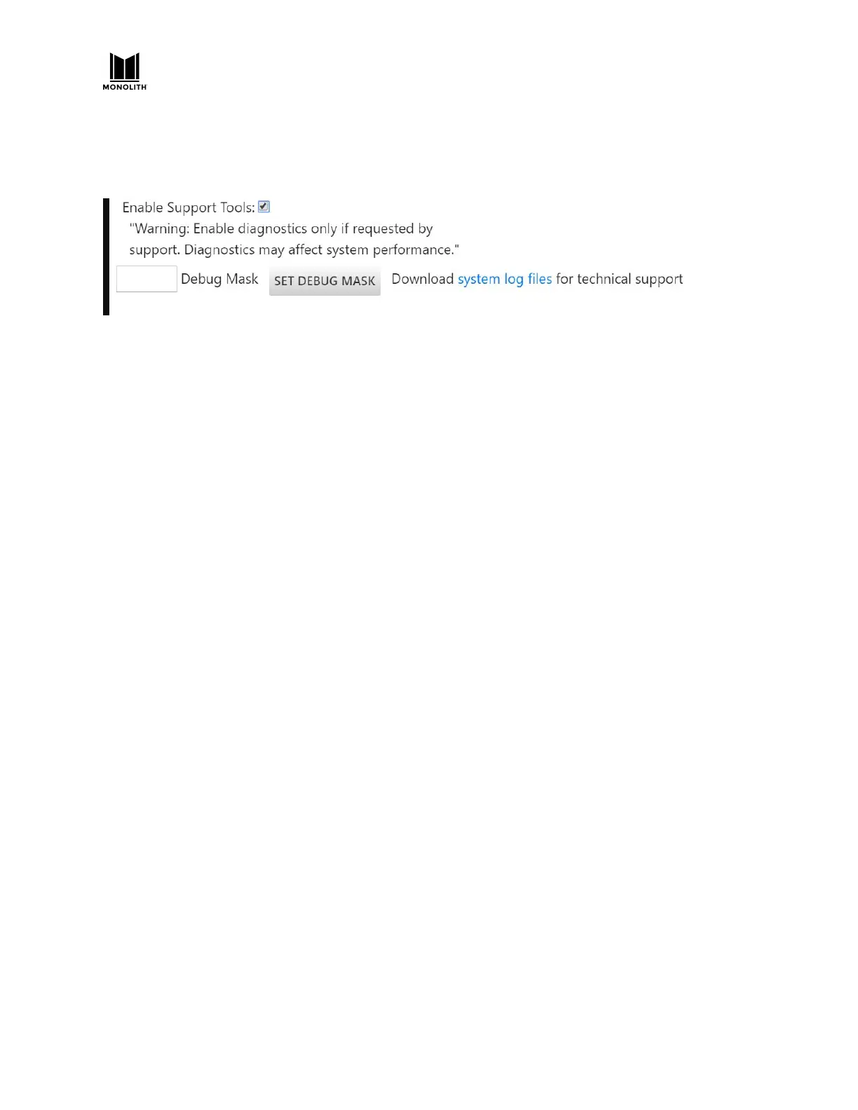 A few extra options are presented When “Enable Support Tools” is checked. These are designed to help