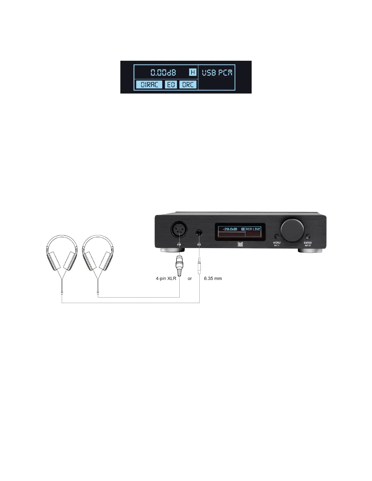 The Home Screen of the display shows the volume level in decibels (dB), the