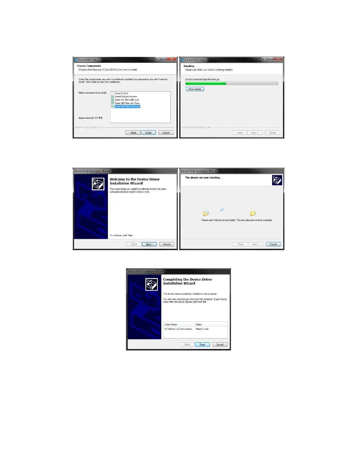 4. Once the files have been extracted and the Cura installation is complete, the driver