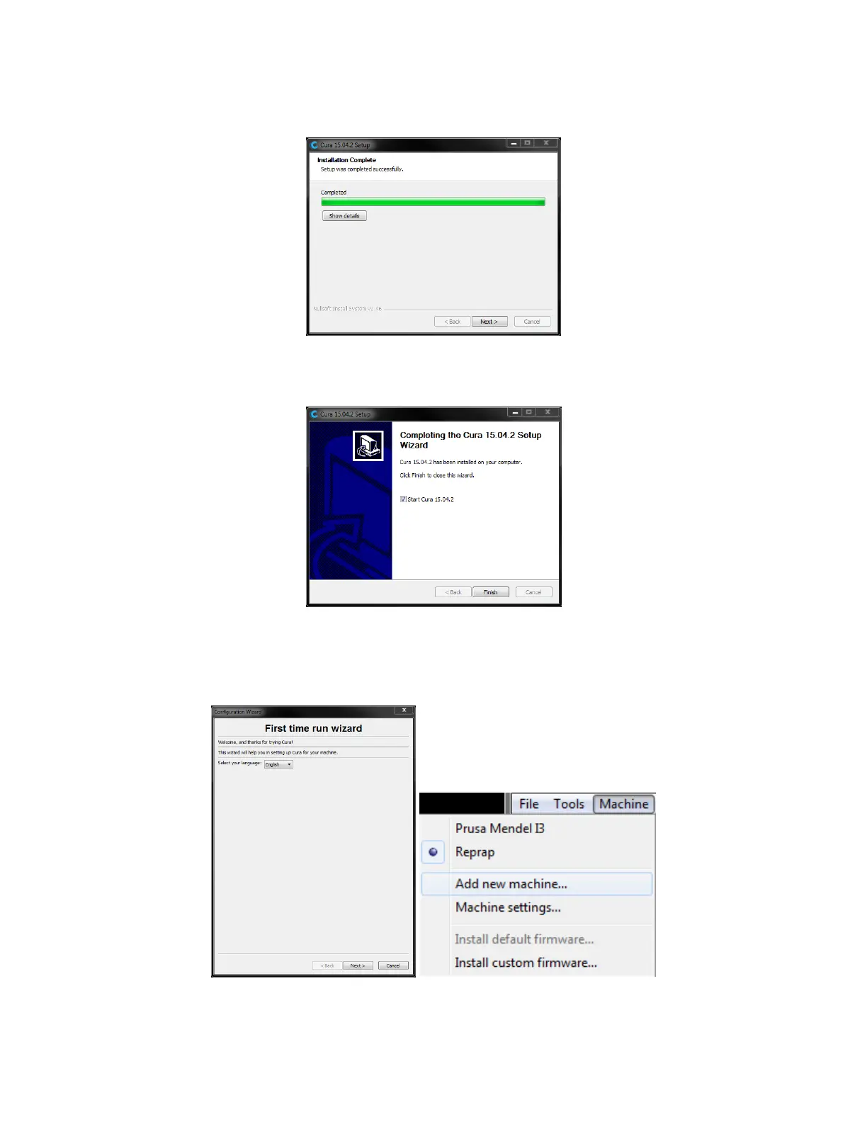 machine, Cura will automatically launch the First time run wizard. Otherwise, you