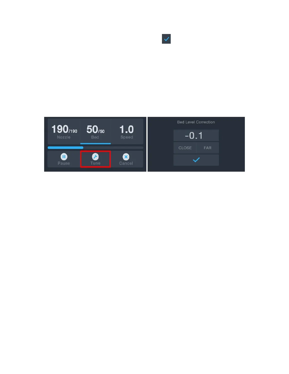 While printing is in progress, you can adjust the global Z offset. To do this, touch the Tune