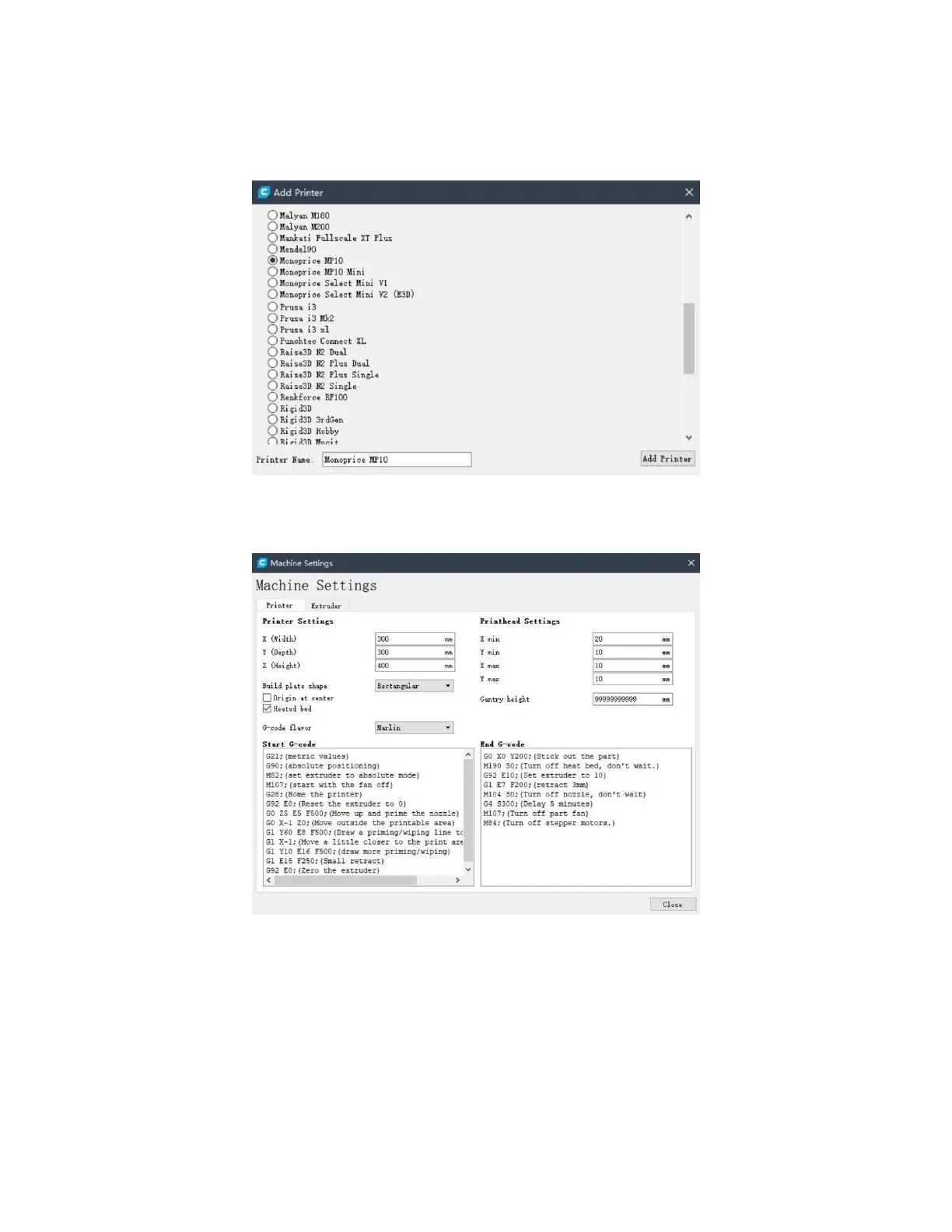 Monoprice MP10 - Select MP10 Printer Model; Configure Machine Settings