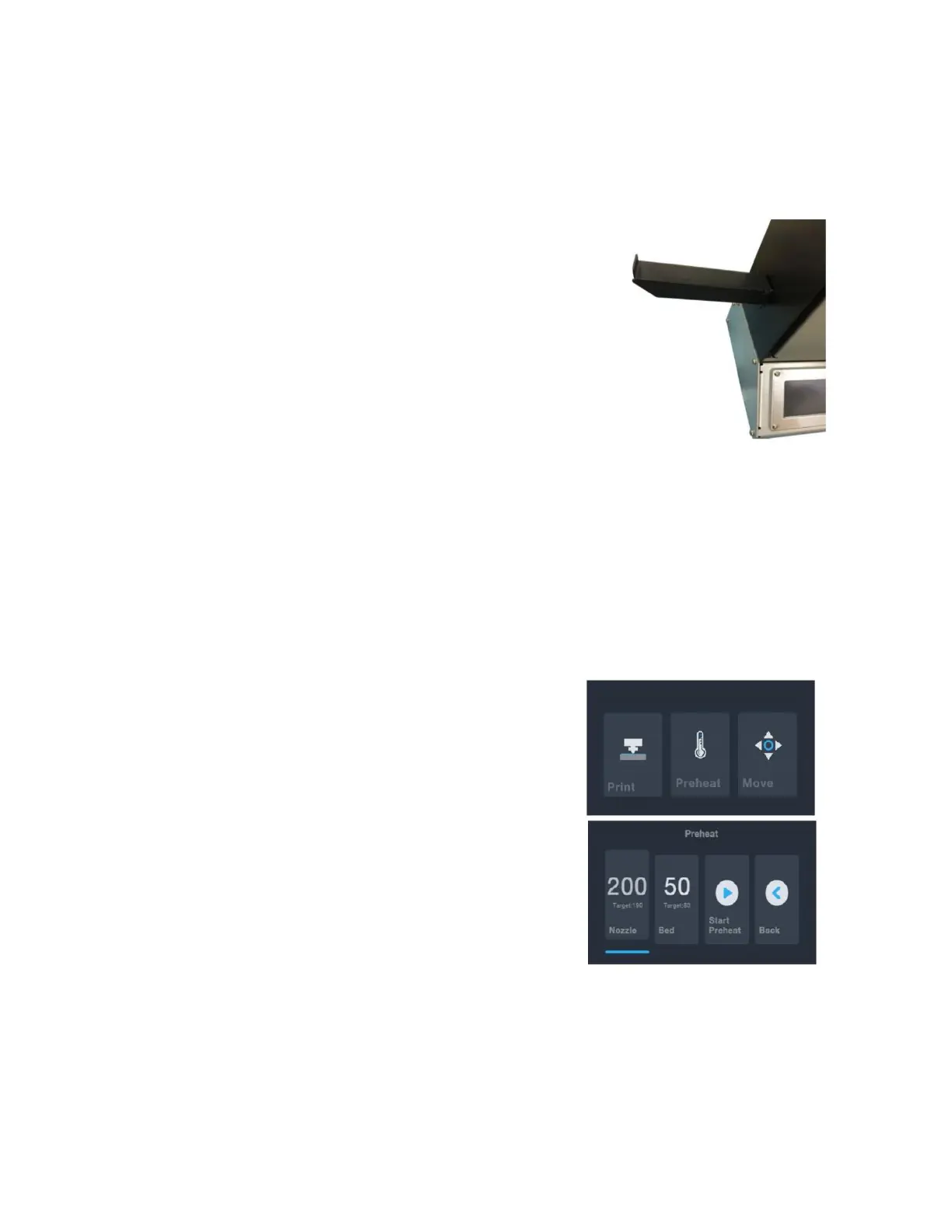 9. Touch the Start Preheat button to start preheating the nozzle and build plate. Once