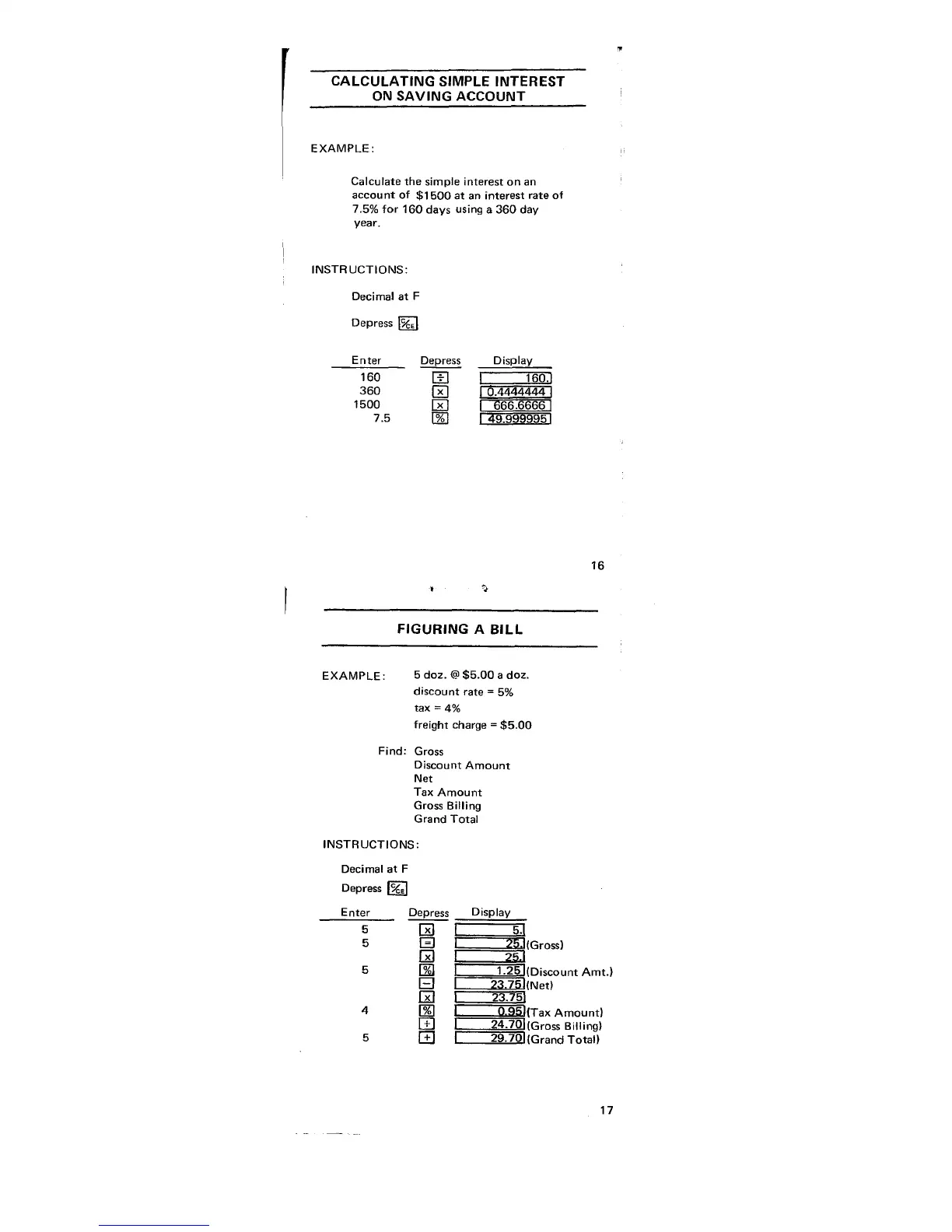 Monroe 30 - Simple Interest Calculation; Figuring a Bill