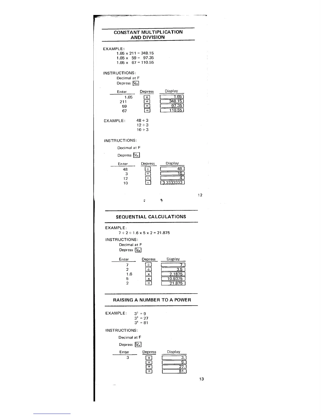 Monroe 30 - Constant Multiplication and Division; Sequential Calculations; Raising a Number to a Power