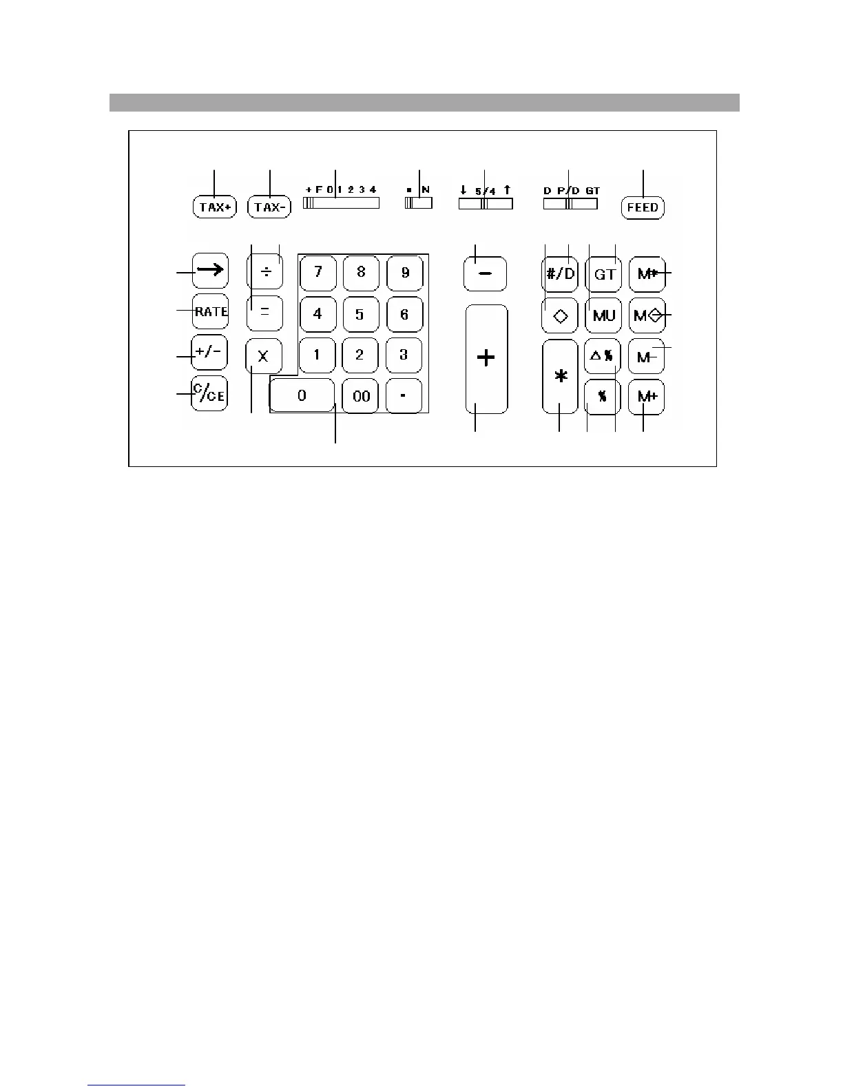 Allows selection of up to seven decimal settings +, F, 0, 1, 2, 3, and 4. For