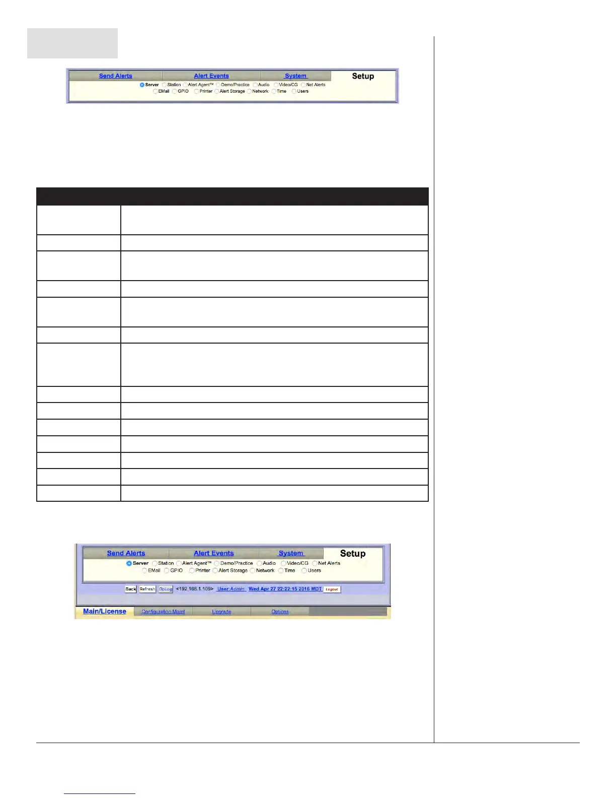 interface to Setup > ServerSetup > Server