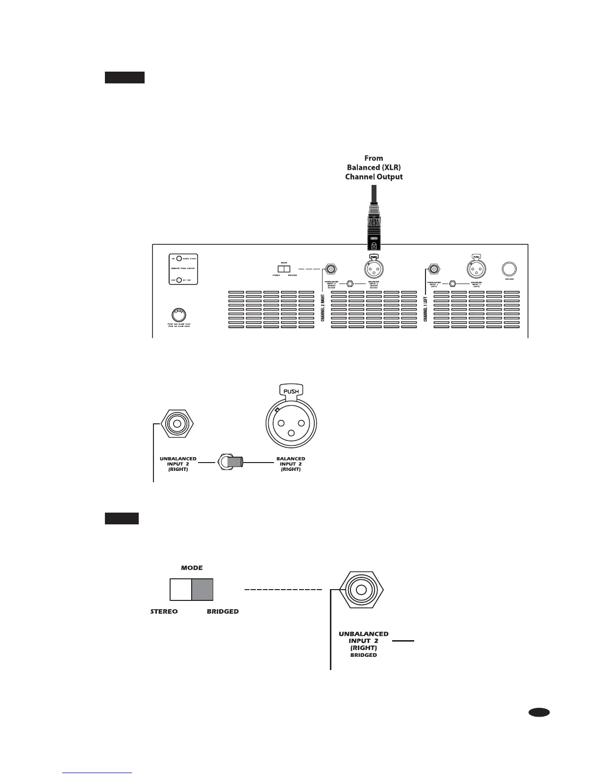 1. Set bridged mono/stereo switch to the bridged position.