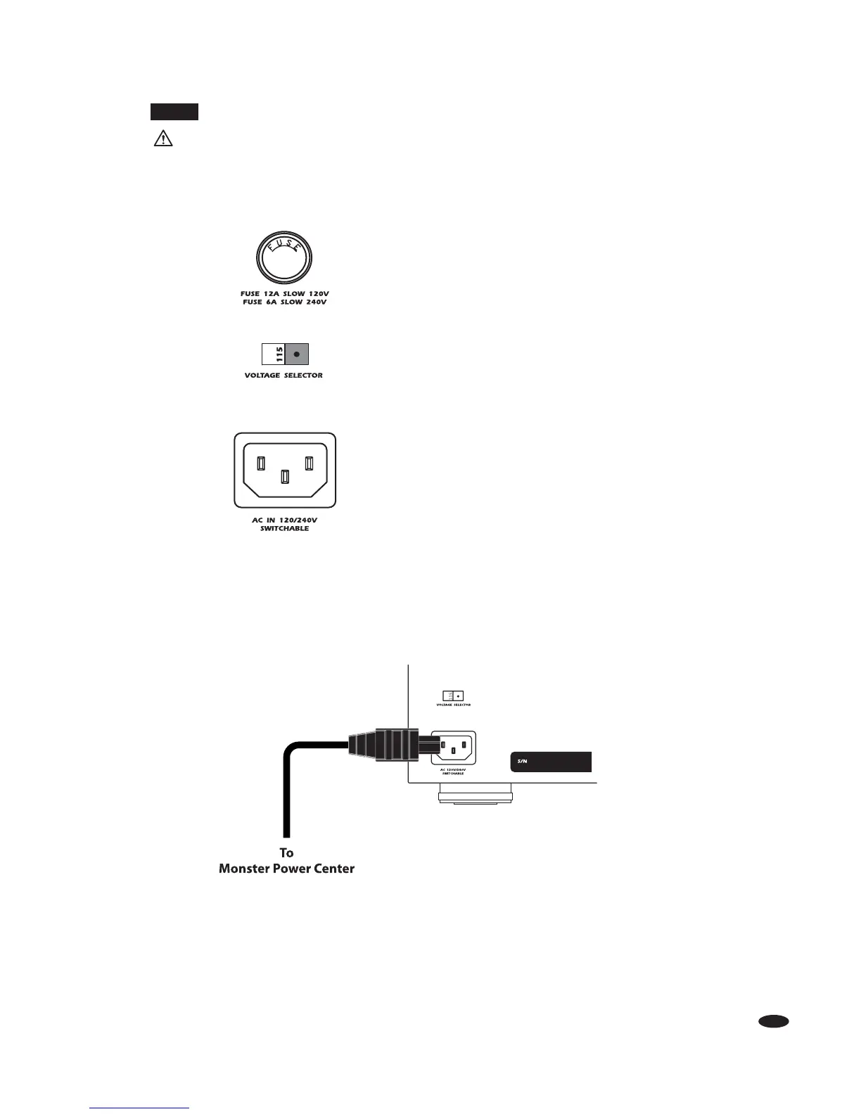 Monster amplifiers can be run at 115V or 230V. Verify that the voltage switch is in the
