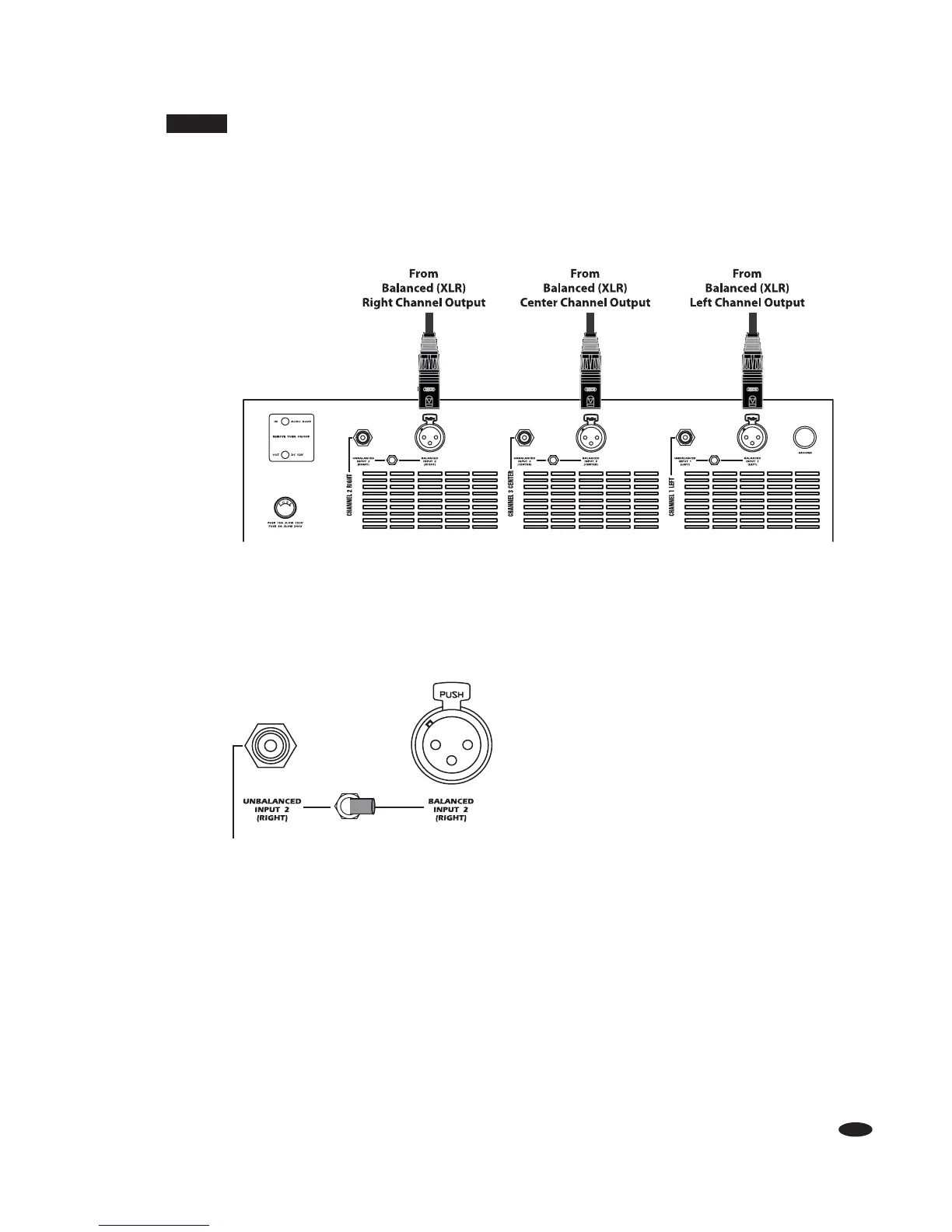 1. Connect one end of the balanced XLR type interconnects to the preamp outputs of the receiver/preamp you
