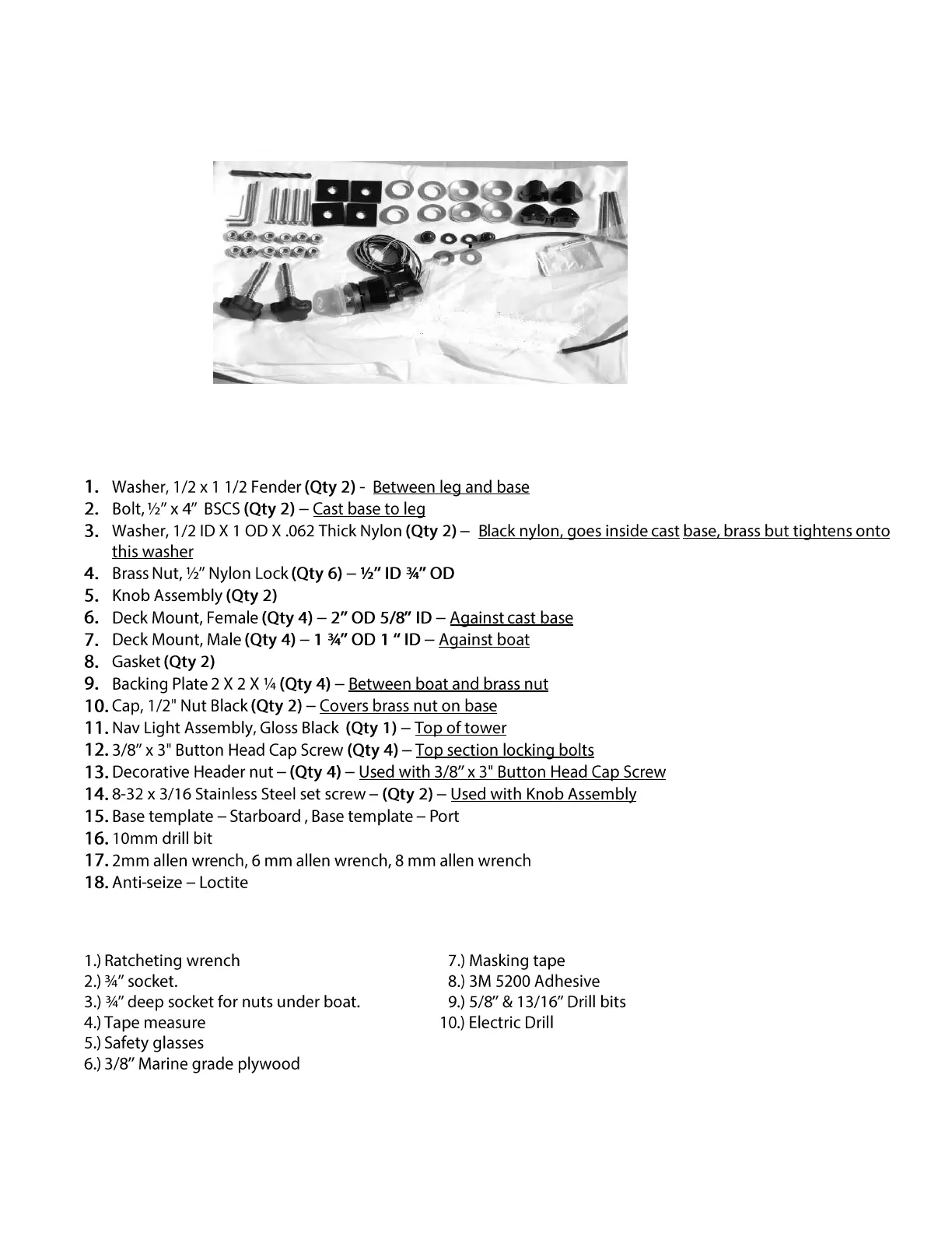 monster tower HS1 - Step 1: Hardware Verification; Supplied Parts List; Tools Required for Installation