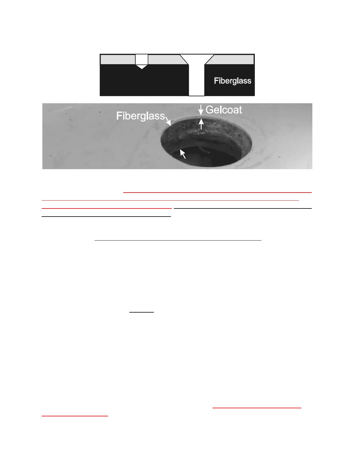 normally about 3/8” thick. IMPORTANT: If the fiberglass below the gelcoat is below 3/8”