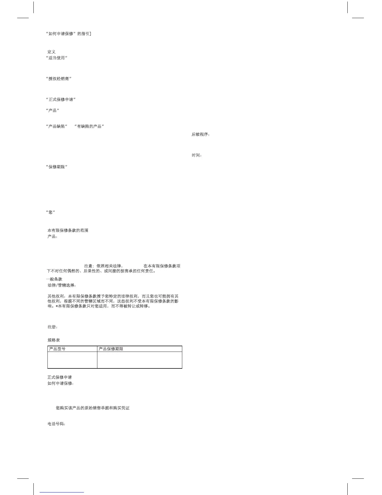 保修期限于规格表中所列期限过期后或您将产品转让时终止,以先发生者