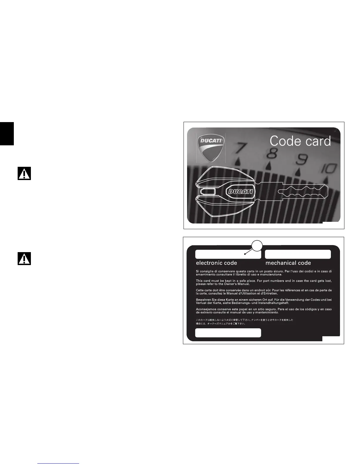 The CODE CARD (fig. 33) supplied with the keys reports an