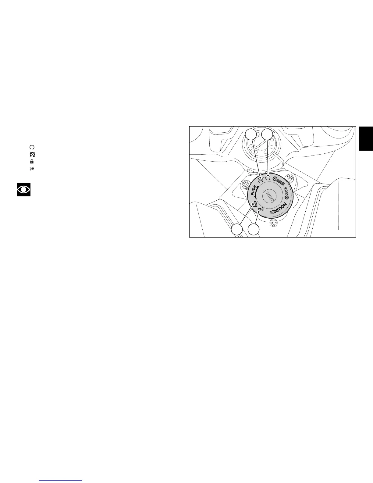 B) : disables lights and engine operation;