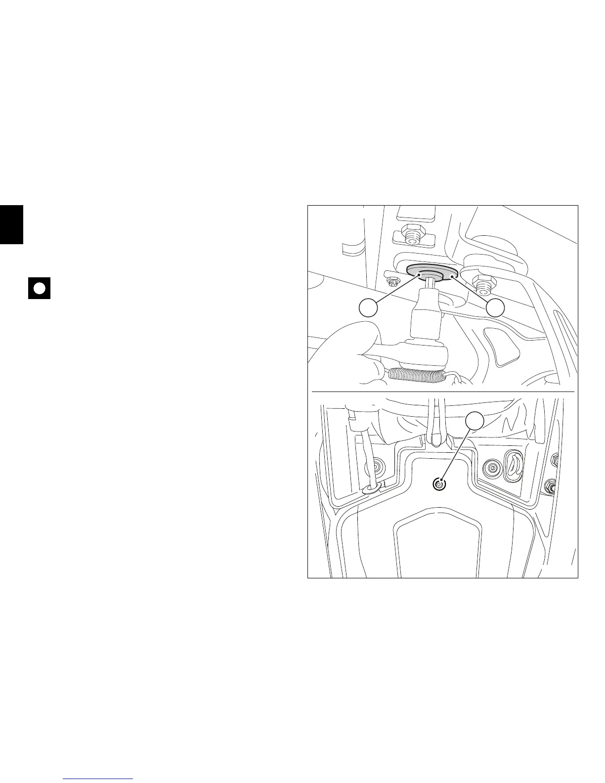 Secure the tank to the subframe with the screw (14) and the