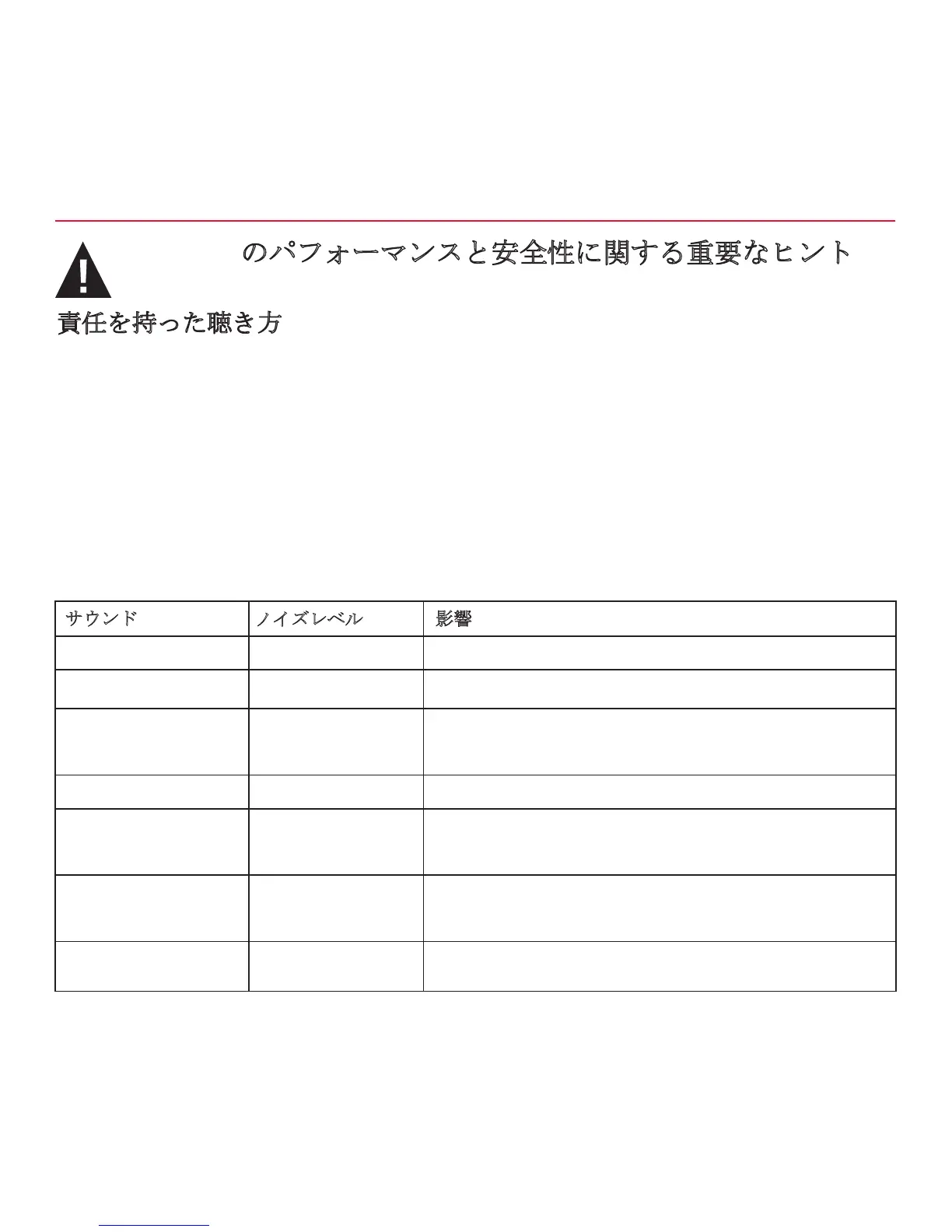 110 定期的に 100 dB 以上のサウンドを 1 分以上聴くと聴力の