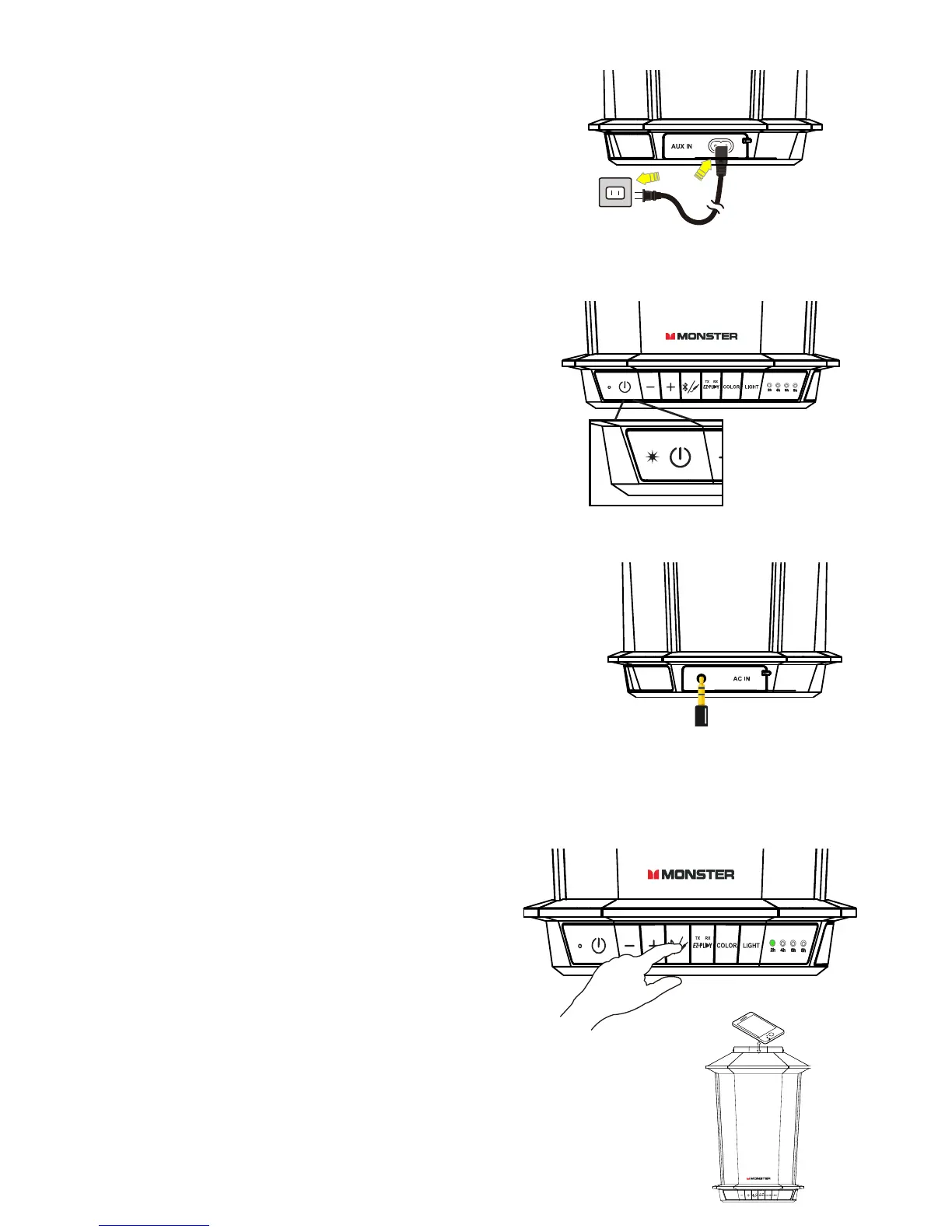 • Plug a 3.5mm cable into the AUX input. Speaker will