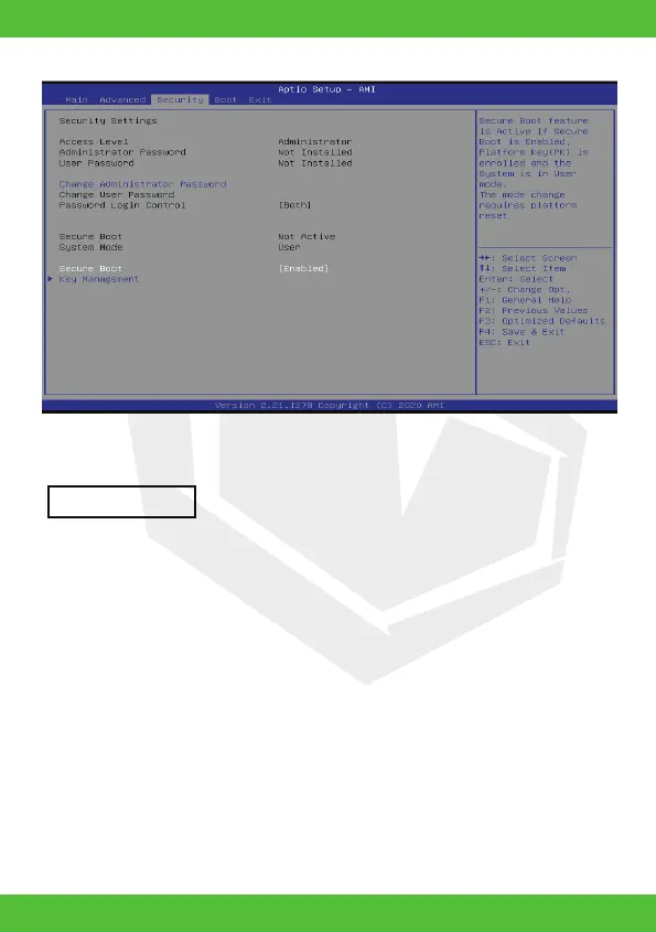 GRAMINA giriş için kullanılır.Şifre Kontrol ögesi, uygulanan BIOS şifre koruma türünü