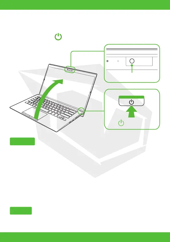 Heben Sie den Deckel des LCD-Bildschirms an und drücken Sie den Netzschalter am