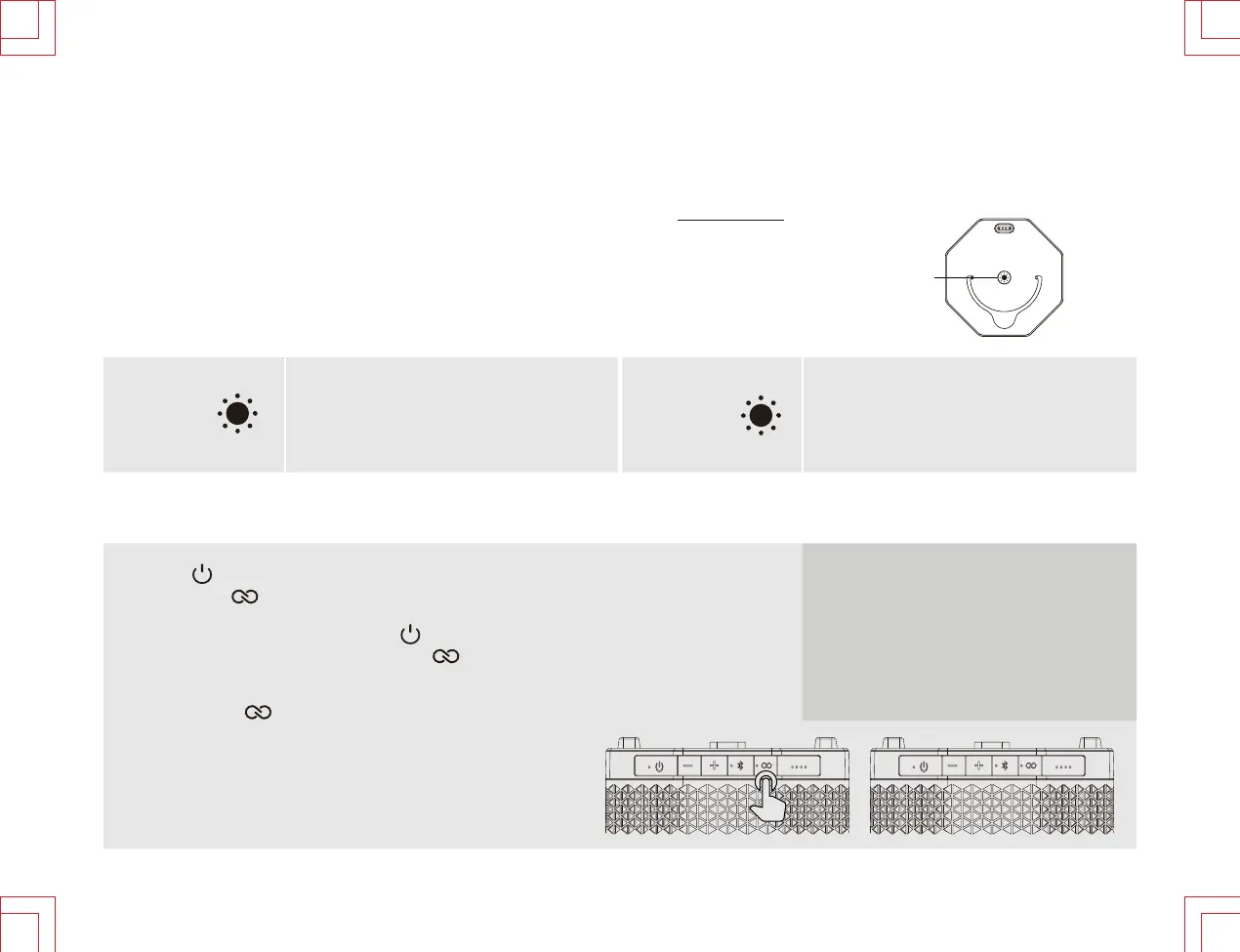 2. On additional EZ PLAY 2 speaker**, press the key to turn on the second speaker, Bluetooth LED and
