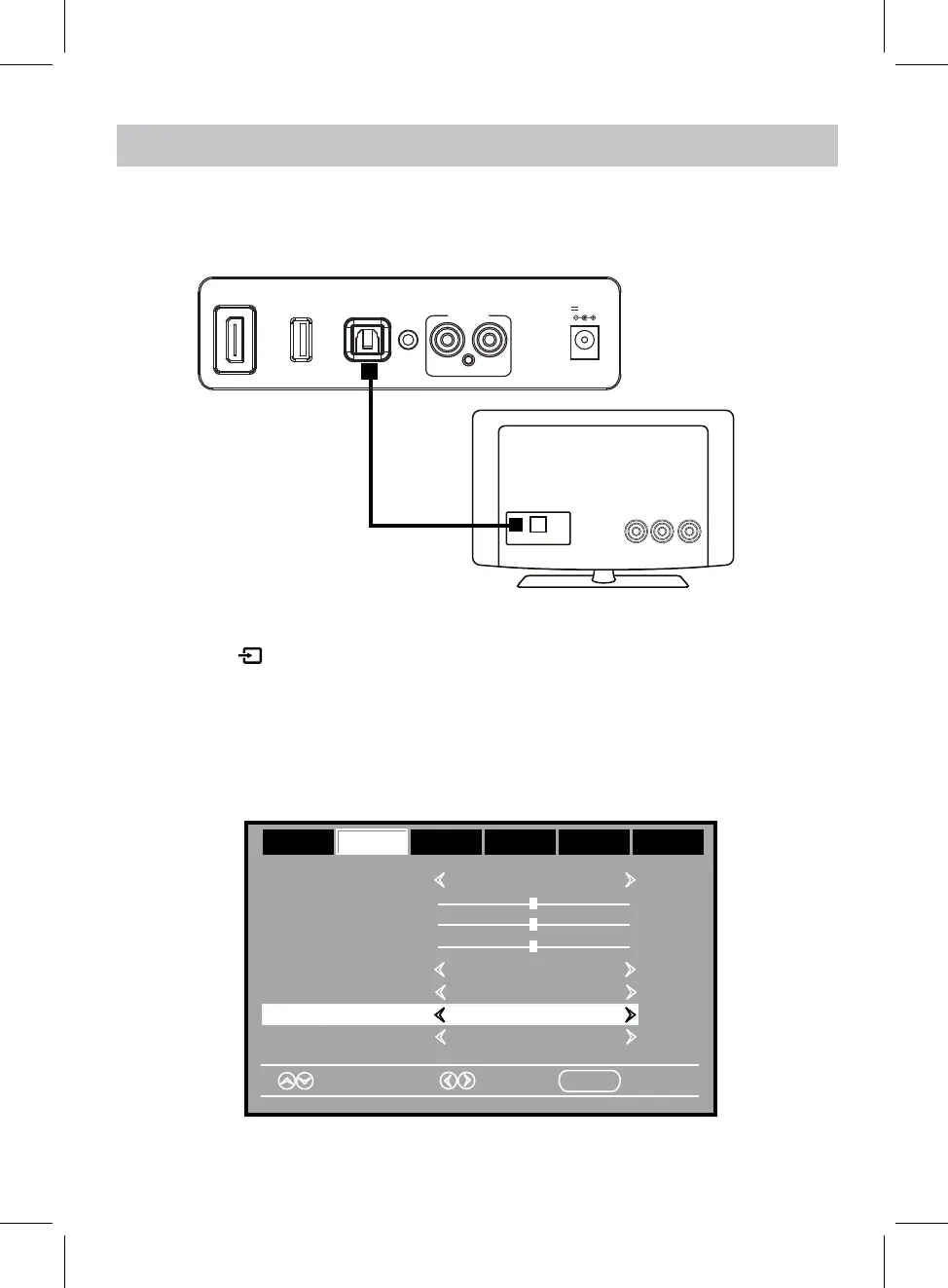 1. Connect the Optical out jack from the external audio player (such as TV, DVD