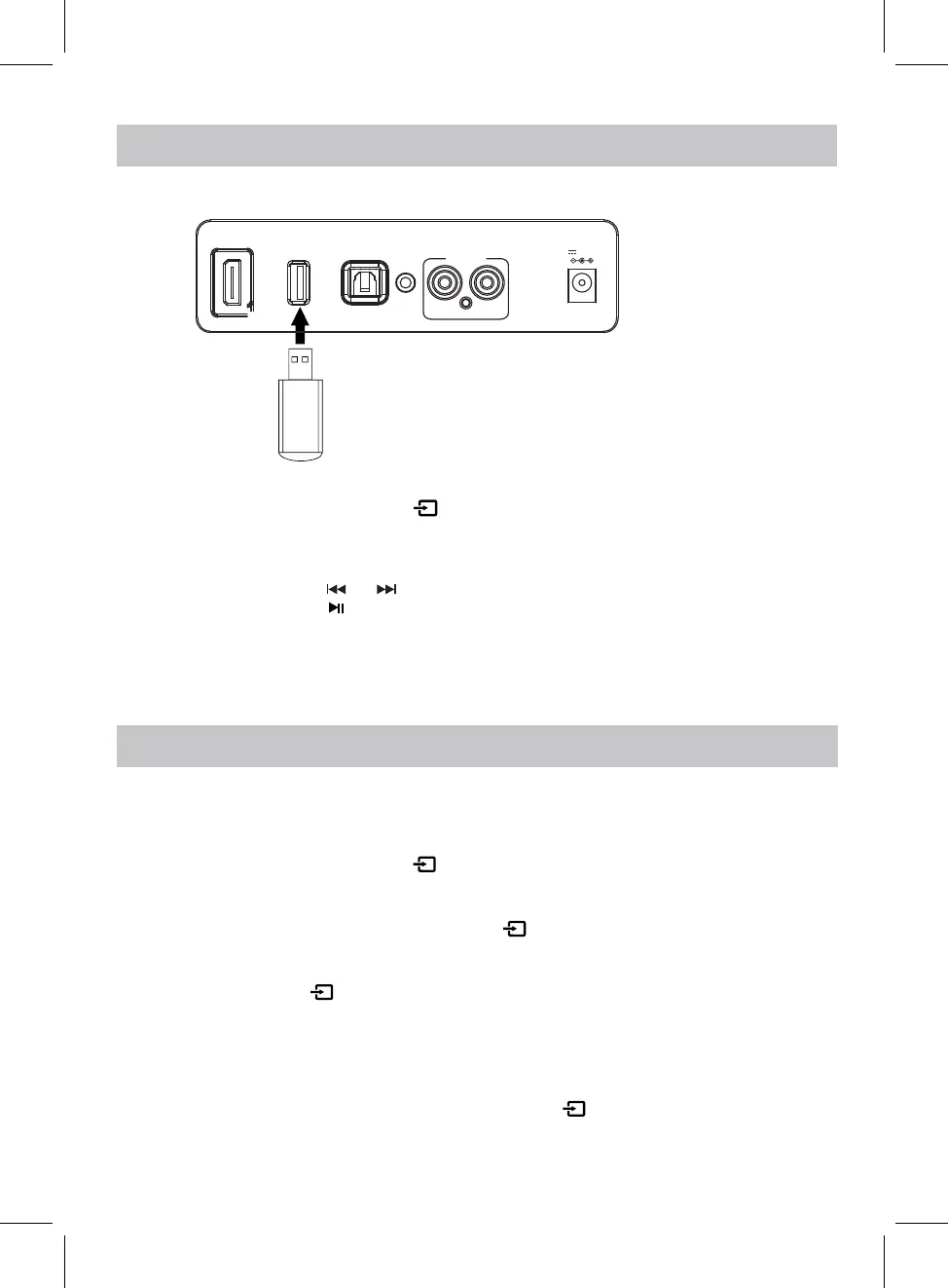 télécommande directement pour passer en mode USB, le voyant BT / USB à l'avant droit de