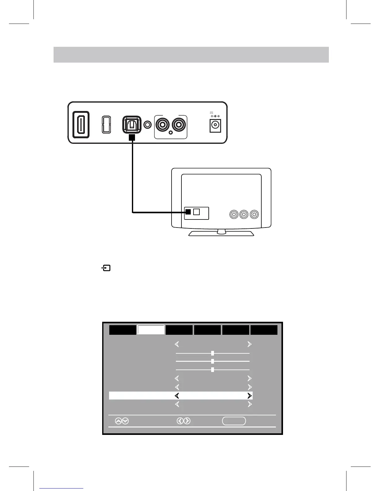 1. Connect the Optical out jack from the external audio player (such as TV, DVD