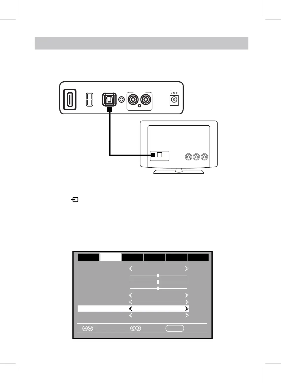 1. Connect the Optical out jack from the external audio player (such as TV, DVD