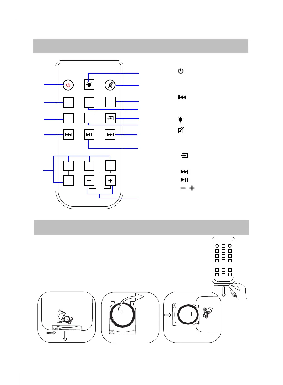 INSTALLATION DE LA PILE DANS LA TÉLÉCOMMANDE