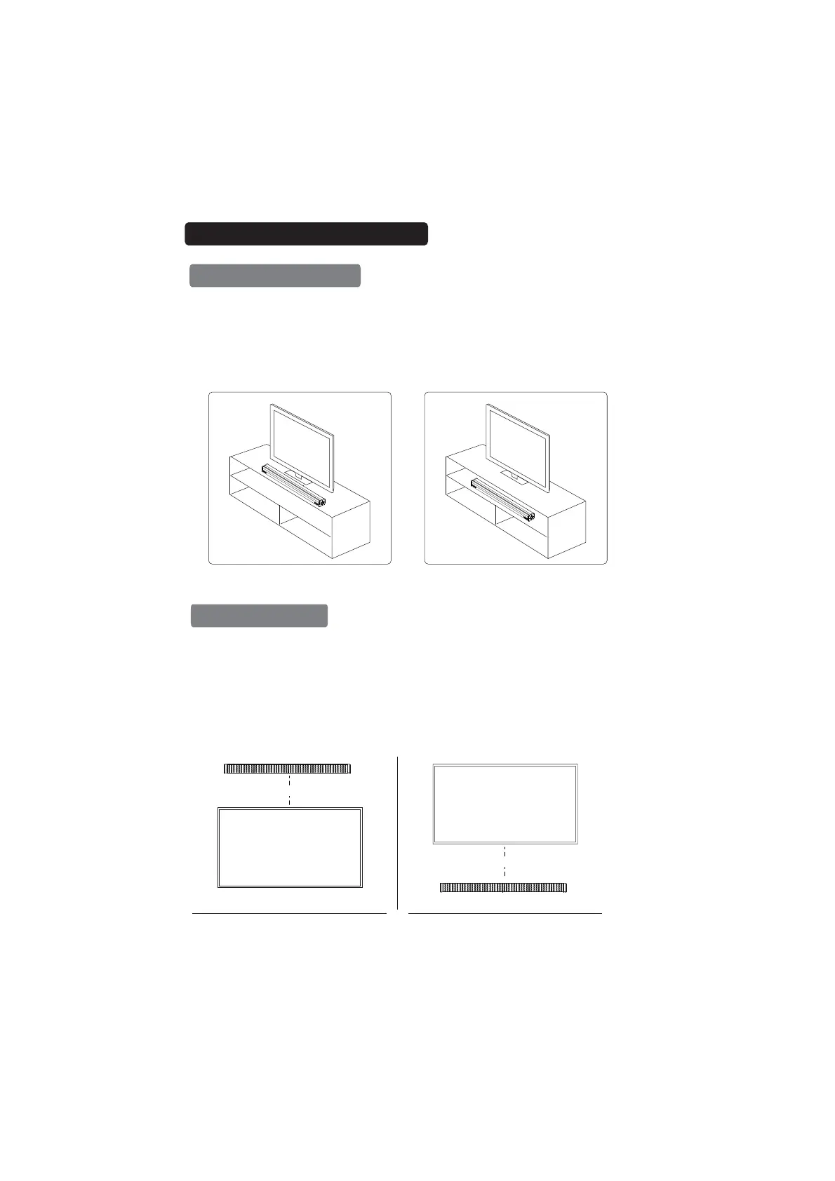 Place the sound bar horizontally on a flat surface such as a TV unit or shelves and align it centrally
