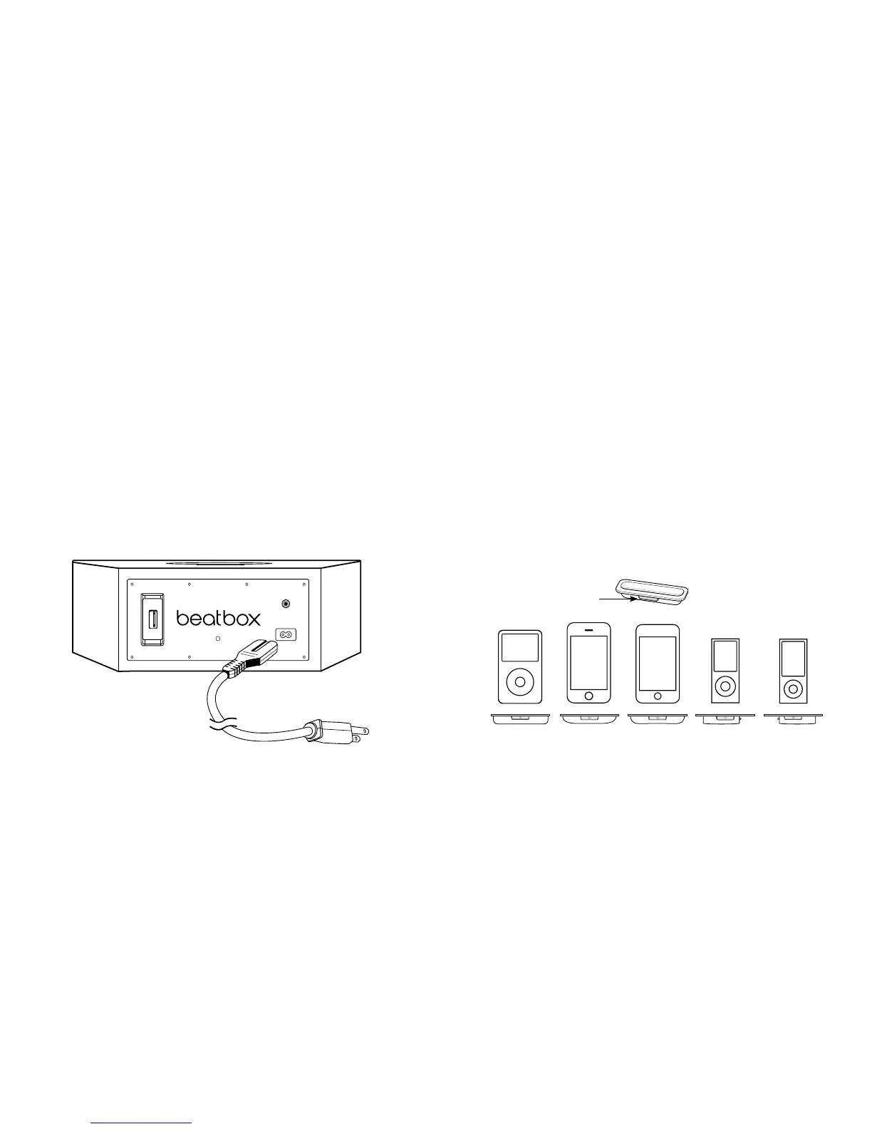 Beatbox includes multiple Dock Adaptors that fit iPod nano